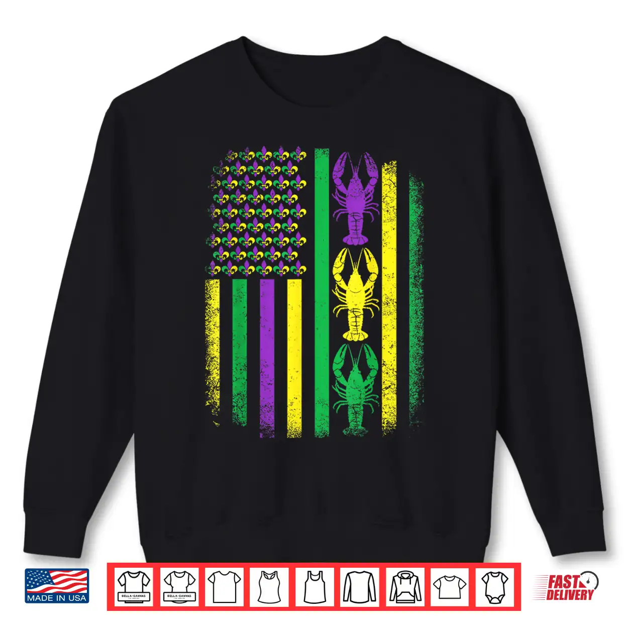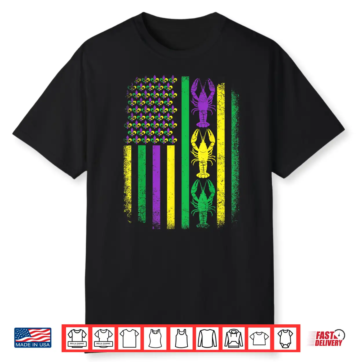 Retro Mardi Gras Usa American Flag Crawfish Parade Men Women Shirt