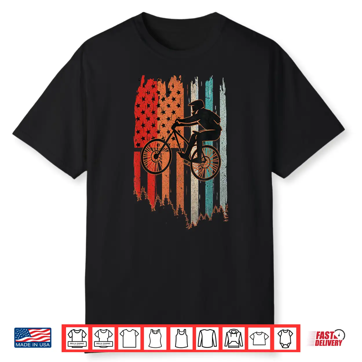 Retro Mountain Bike 4Th Of July Vintage Usa Flag Mtb Biking Shirt