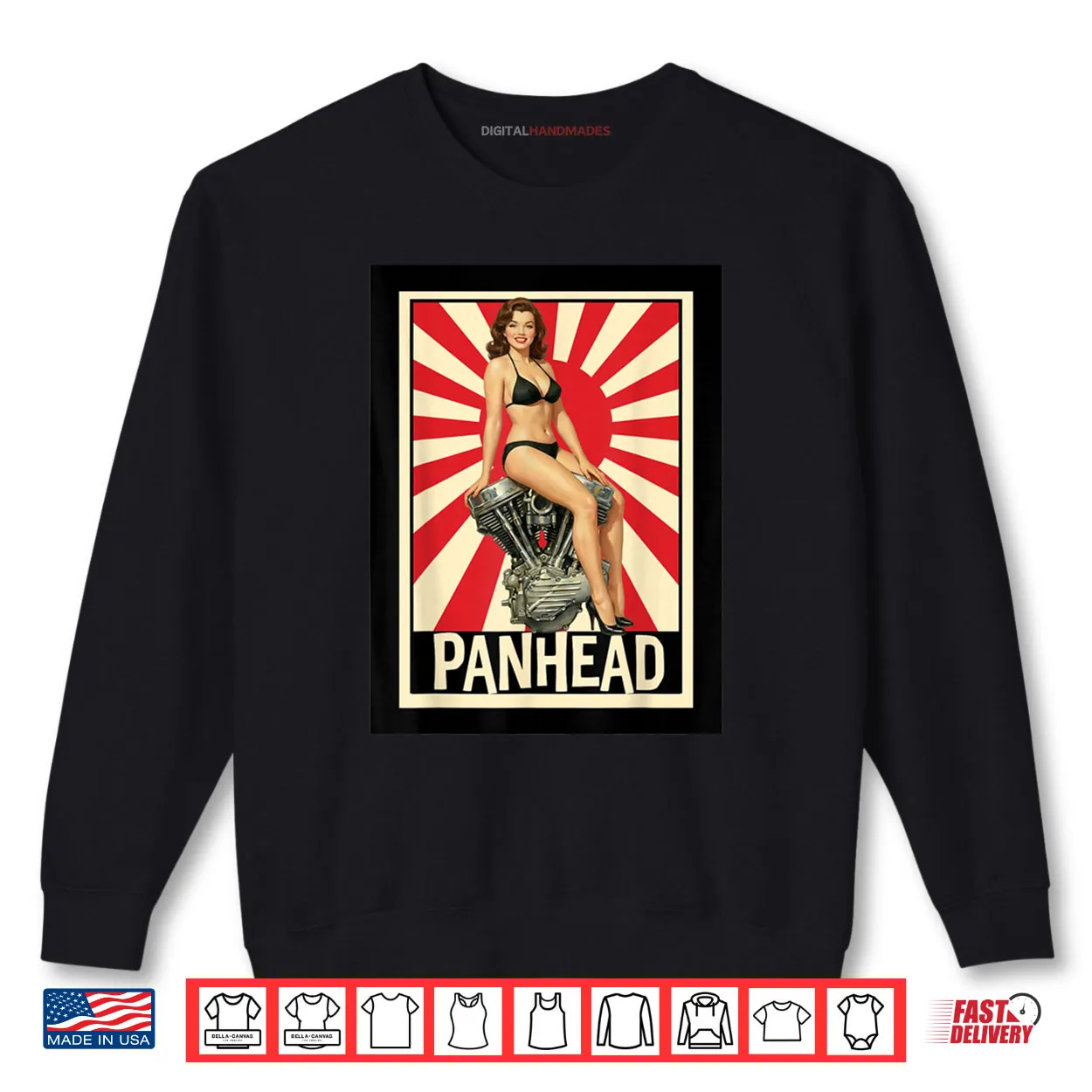 Retro Panhead VTwin Motorcycle Engine Sunset Flag Biker Shirt