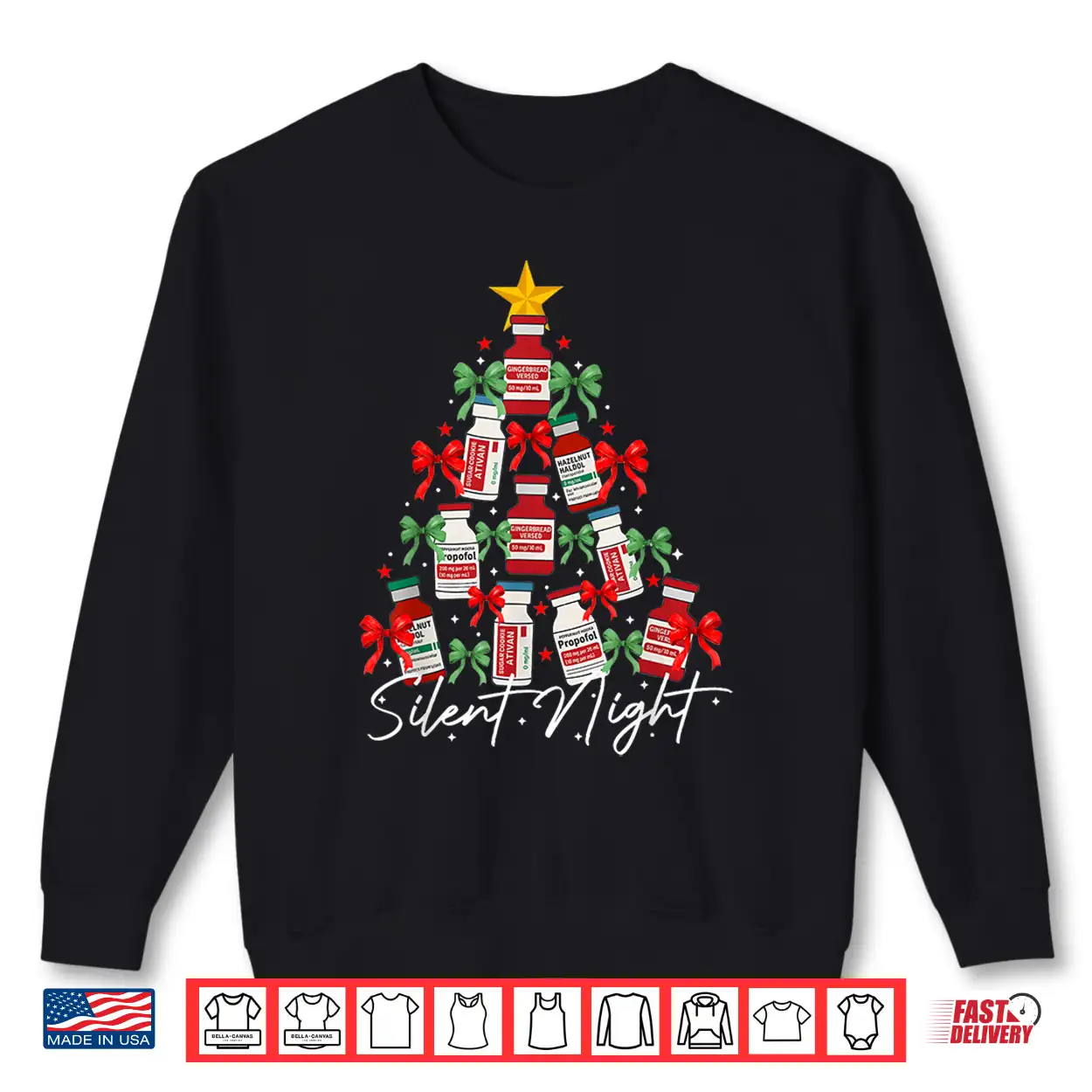 Retro Propofol Christmas Tree Silent Night Icu Nurses Funny Shirt
