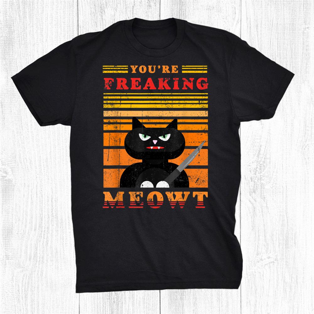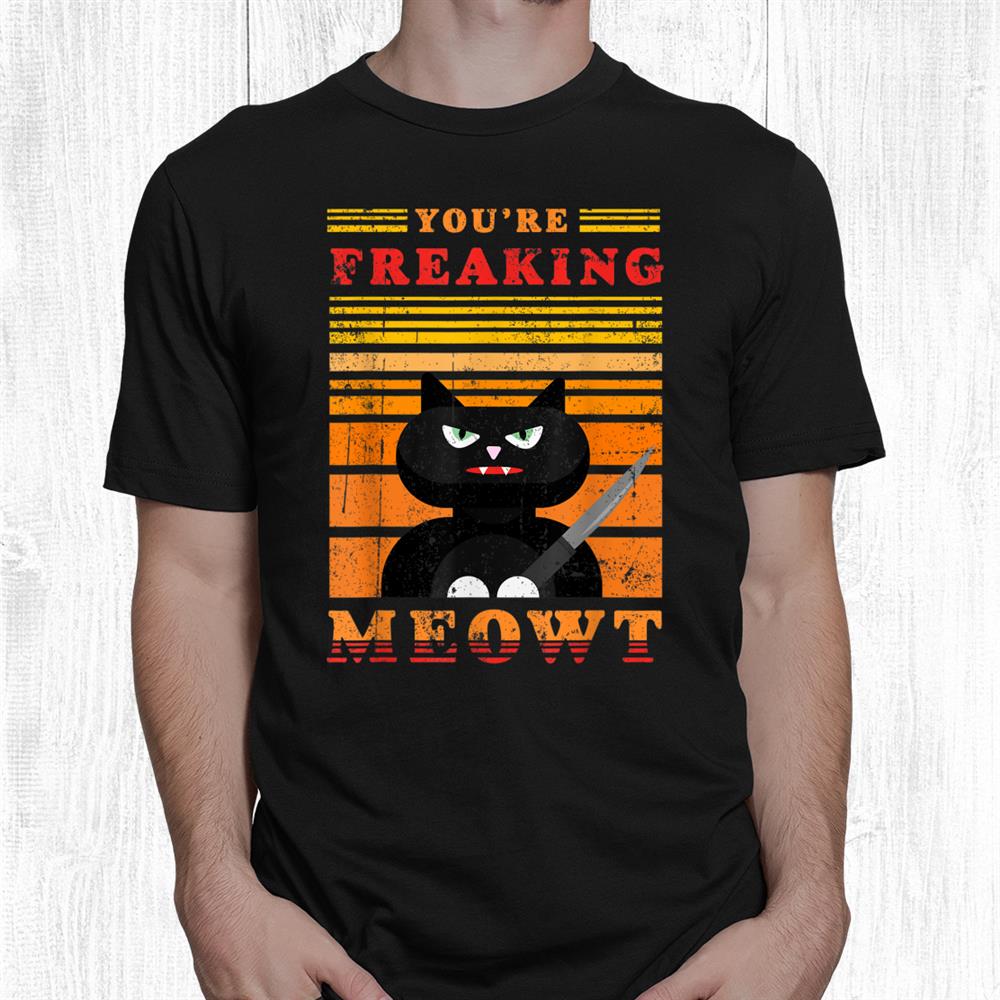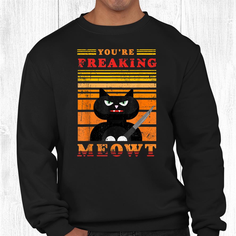 Retro Youre Freaking Meowt Scary Funny Black Cat Halloween Shirt, hoodie, sweatshirt, long sleeve and ladies T-shirt