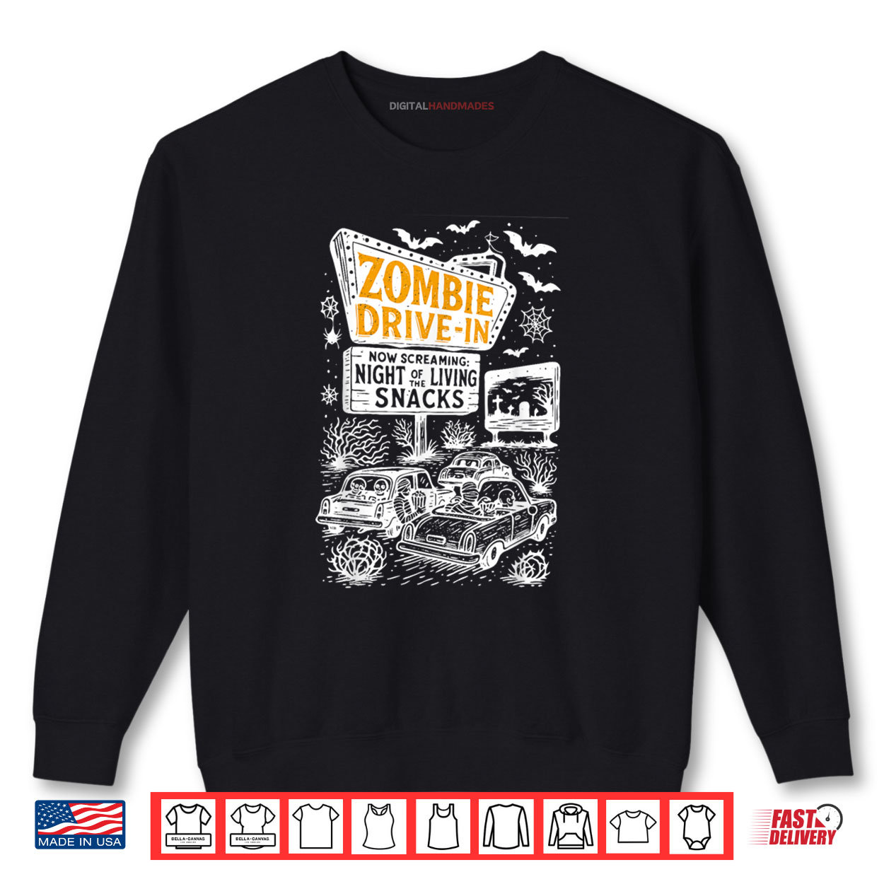 Retro Zombie Drive In Skeleton Movie Night Hotel Halloween Shirt