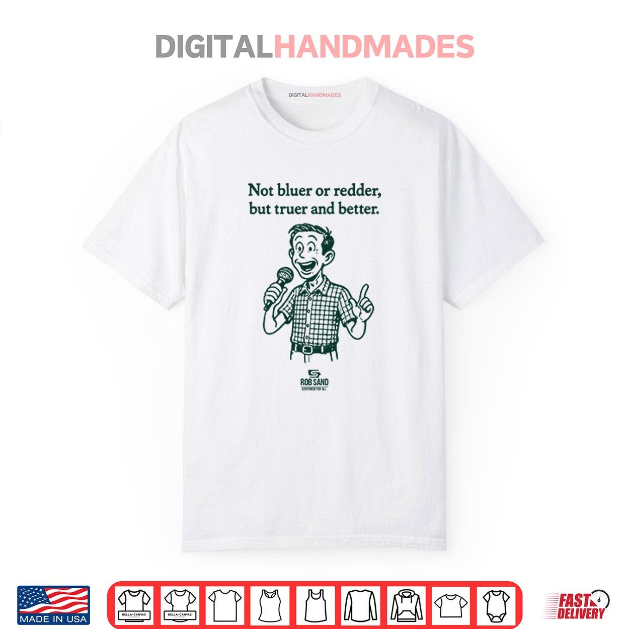 Rob Sand Truer Better shirt, Iowa Politician Slogan shirt, Not Bluer Redder shirt, Rob Sand For Auditor shirt, Political Campaign Message shirt, Iowa State Auditor shirt, Democratic Politician Supporter shirt, Better Government Motto shirt, Truth In Politics shirt, Independent Thinker shirt