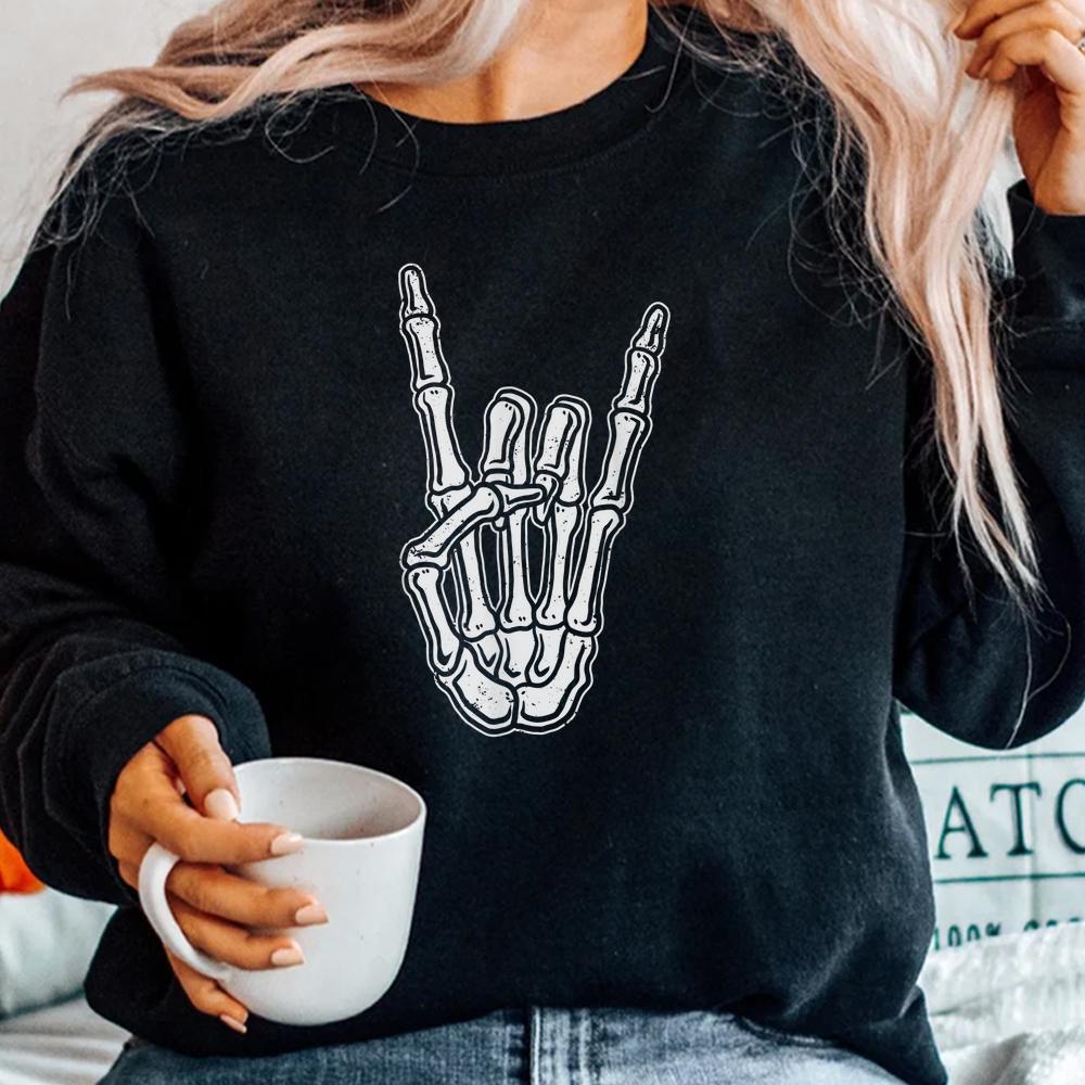 Rock On Skeleton Hand Halloween Shirt, hoodie, sweatshirt, long sleeve and ladies T-shirt