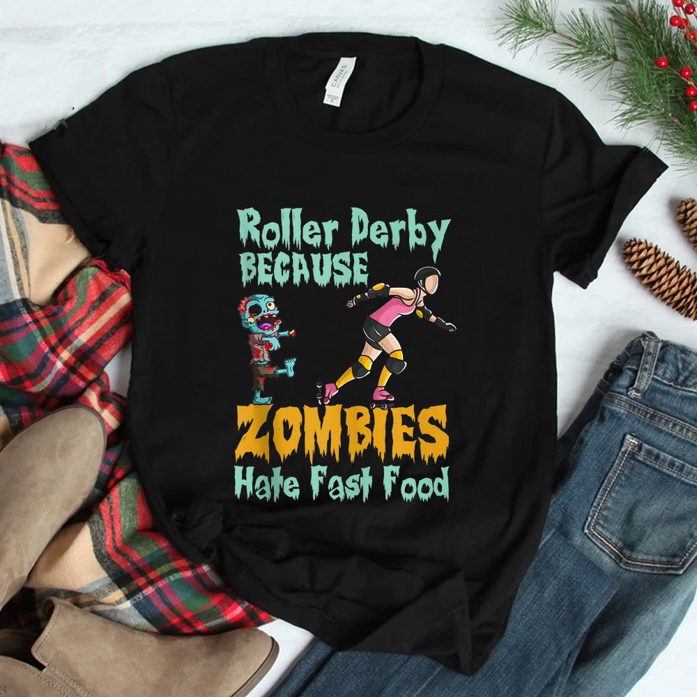 Roller Derby Halloween Zombies Hate Fast Food Shirt