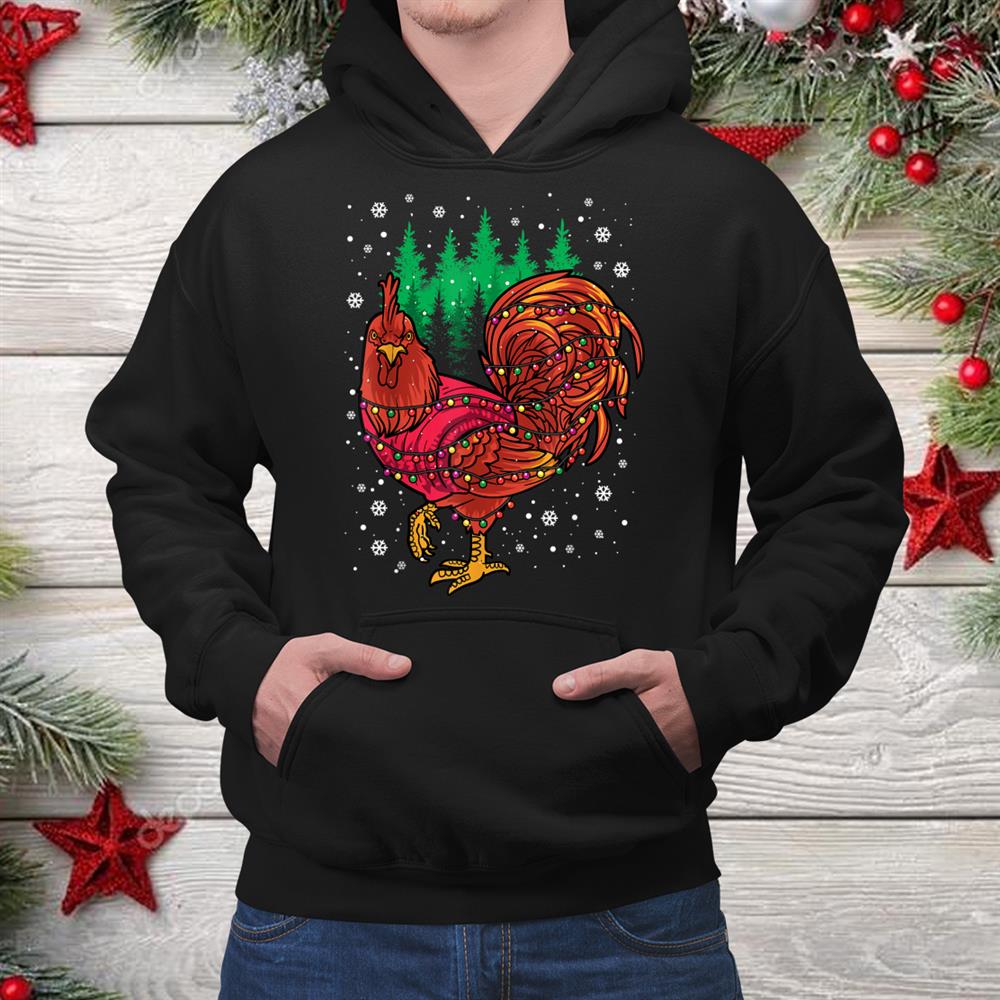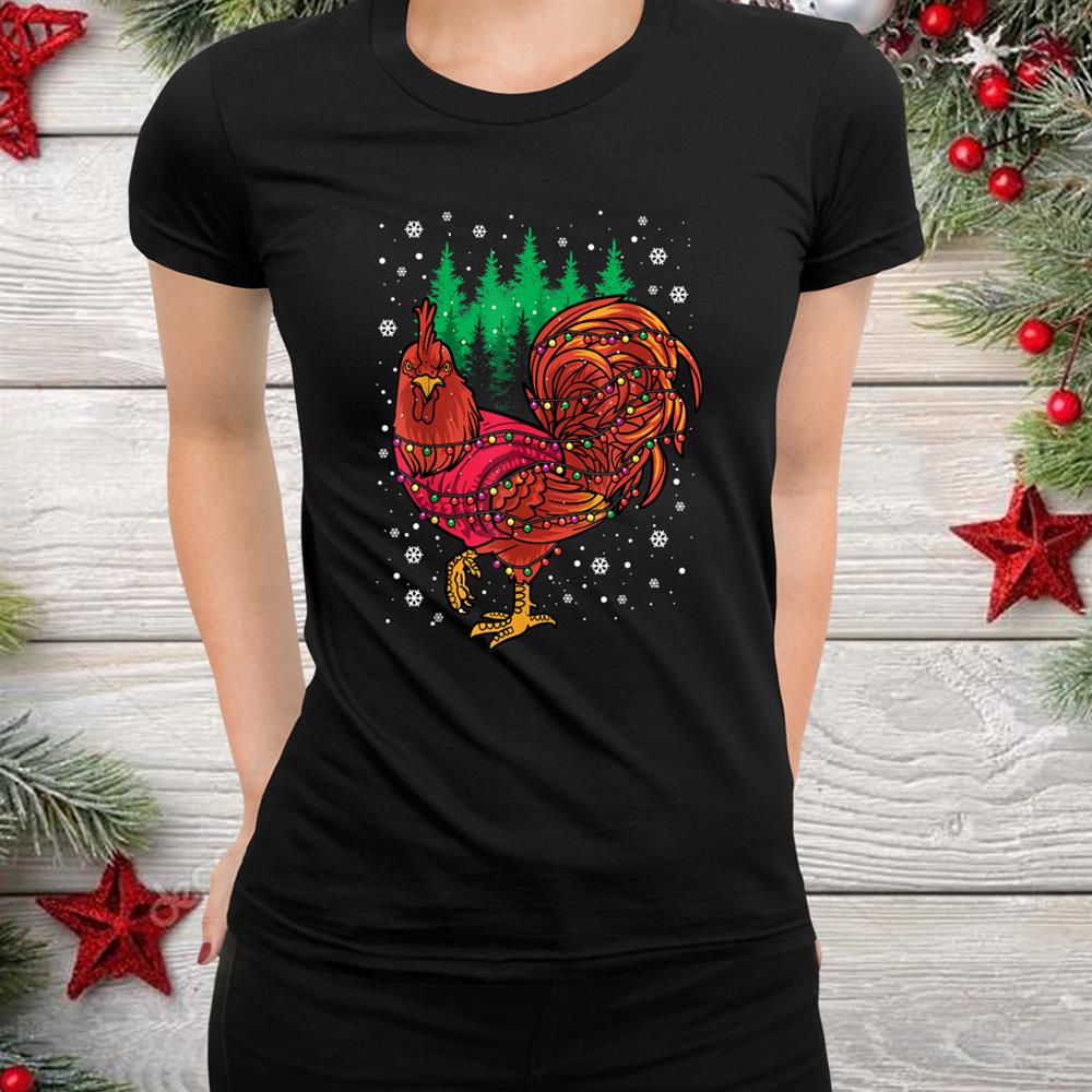 Rooster Xmas Chicken Lights Snowflakes Christmas Shirt, hoodie, sweatshirt, long sleeve and ladies T-shirt