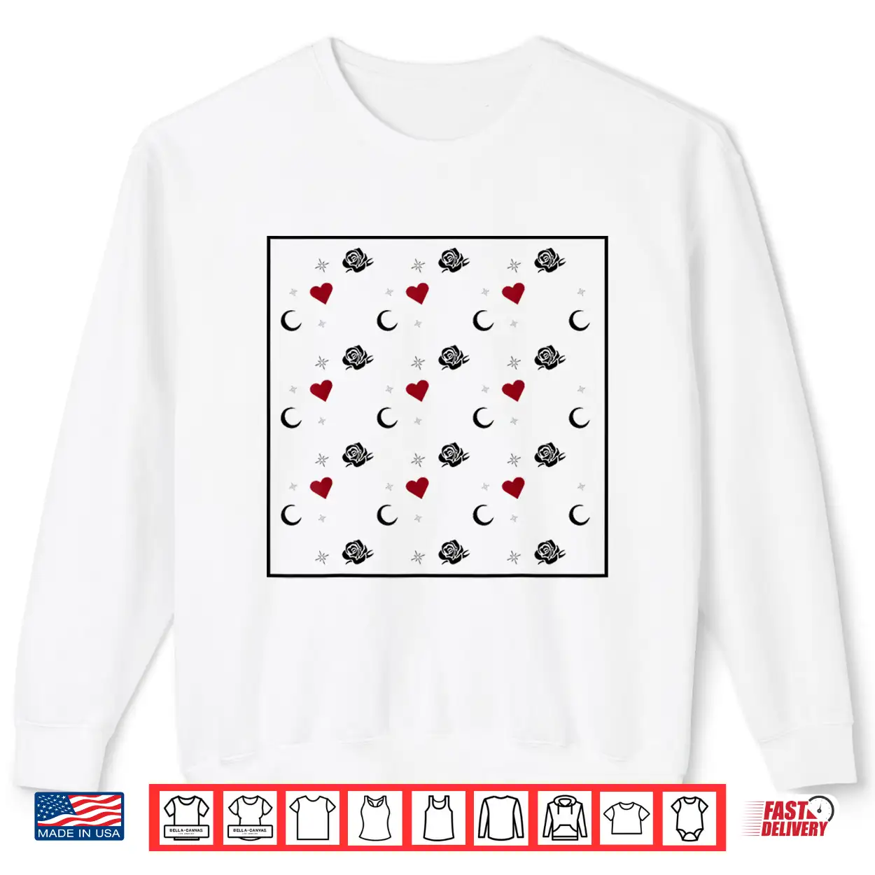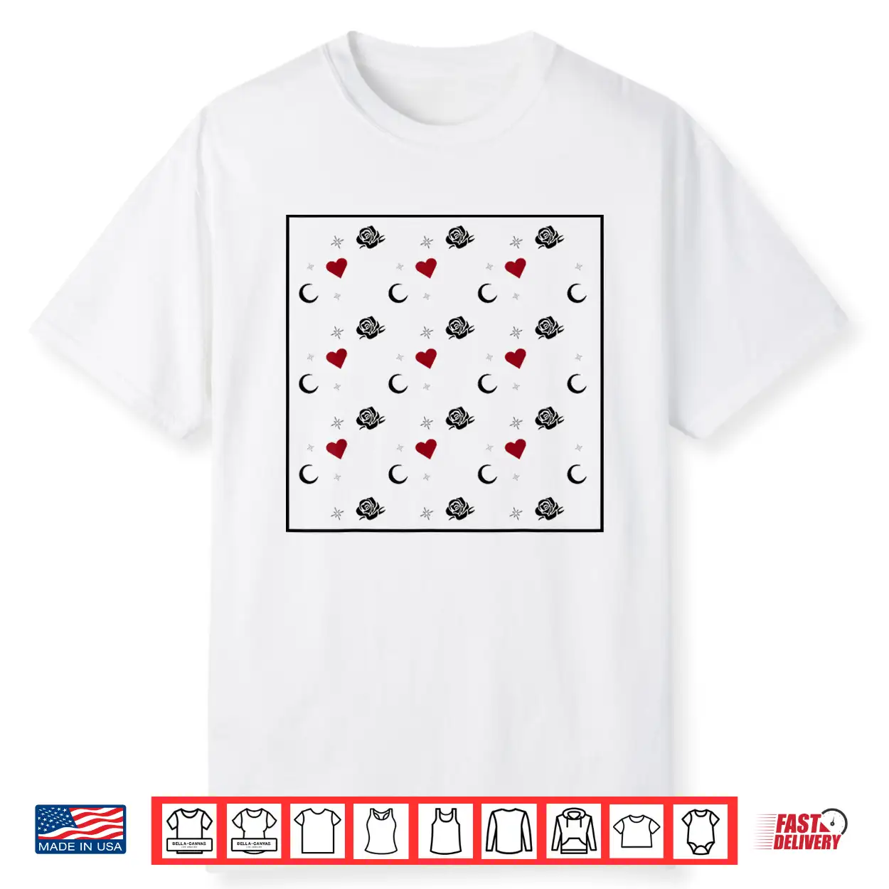Roses Hearts And Moons Graphic Art Shirt