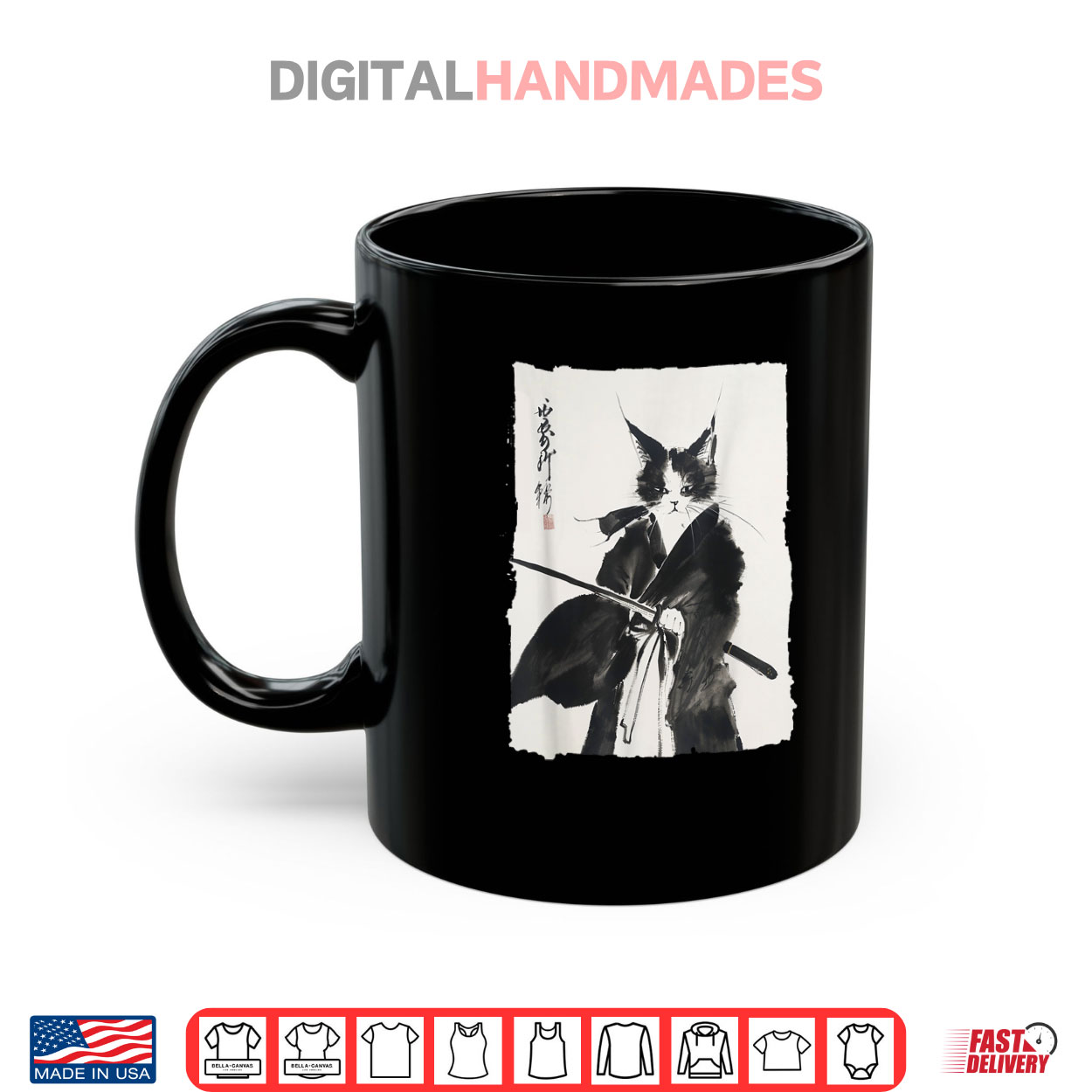 Samurai Cat Vintage Ukiyo e Warrior Art Graphic Cat Art Shirt