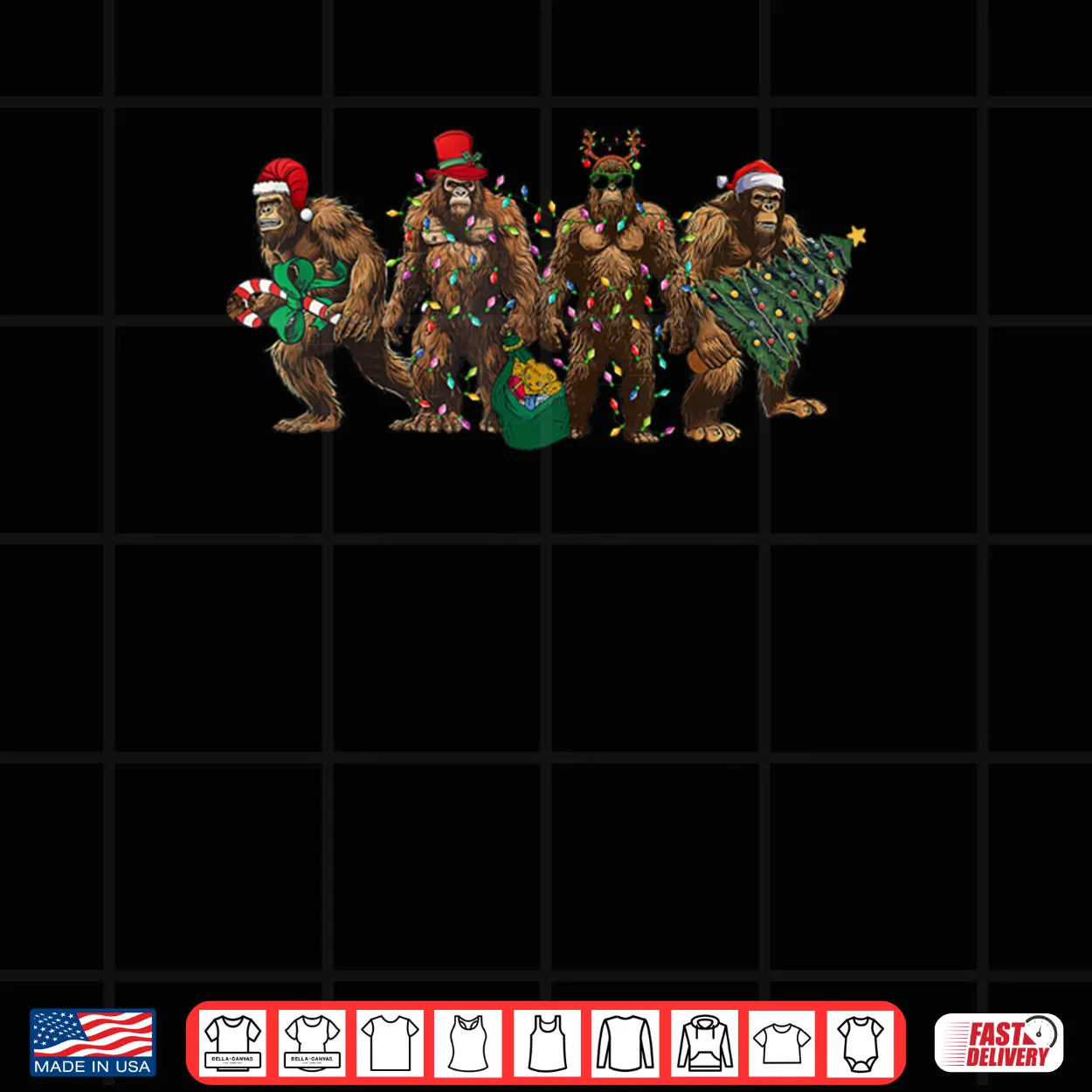 Santa Bigfoot Christmas Tree Xmas Lights Funny Sasquatch Shirt