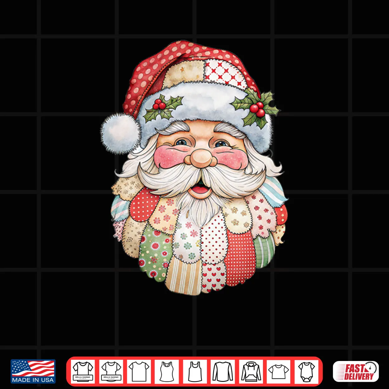Santa Claus Face Patchwork Folk Art Christmas Xmas Shirt