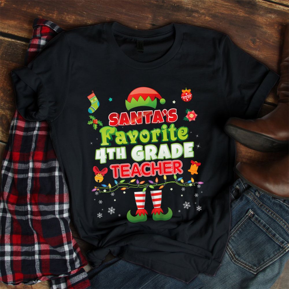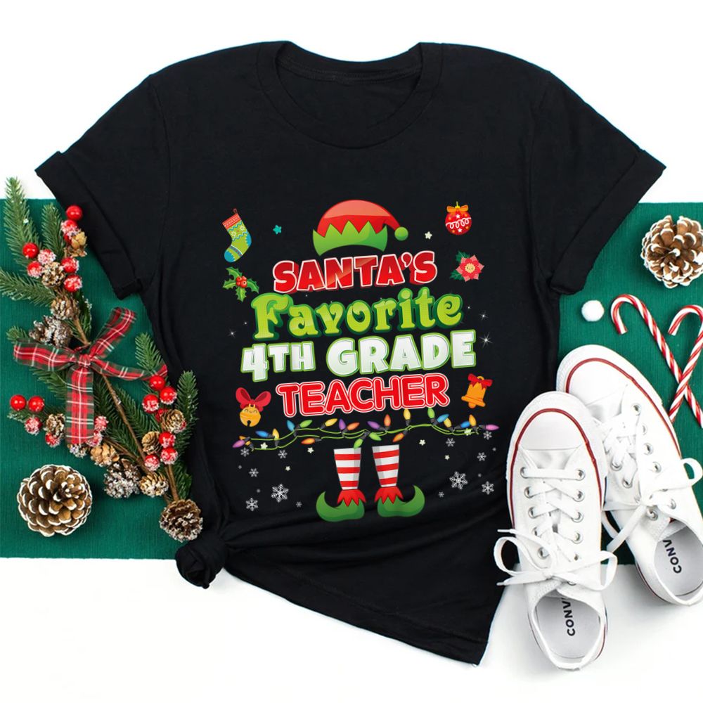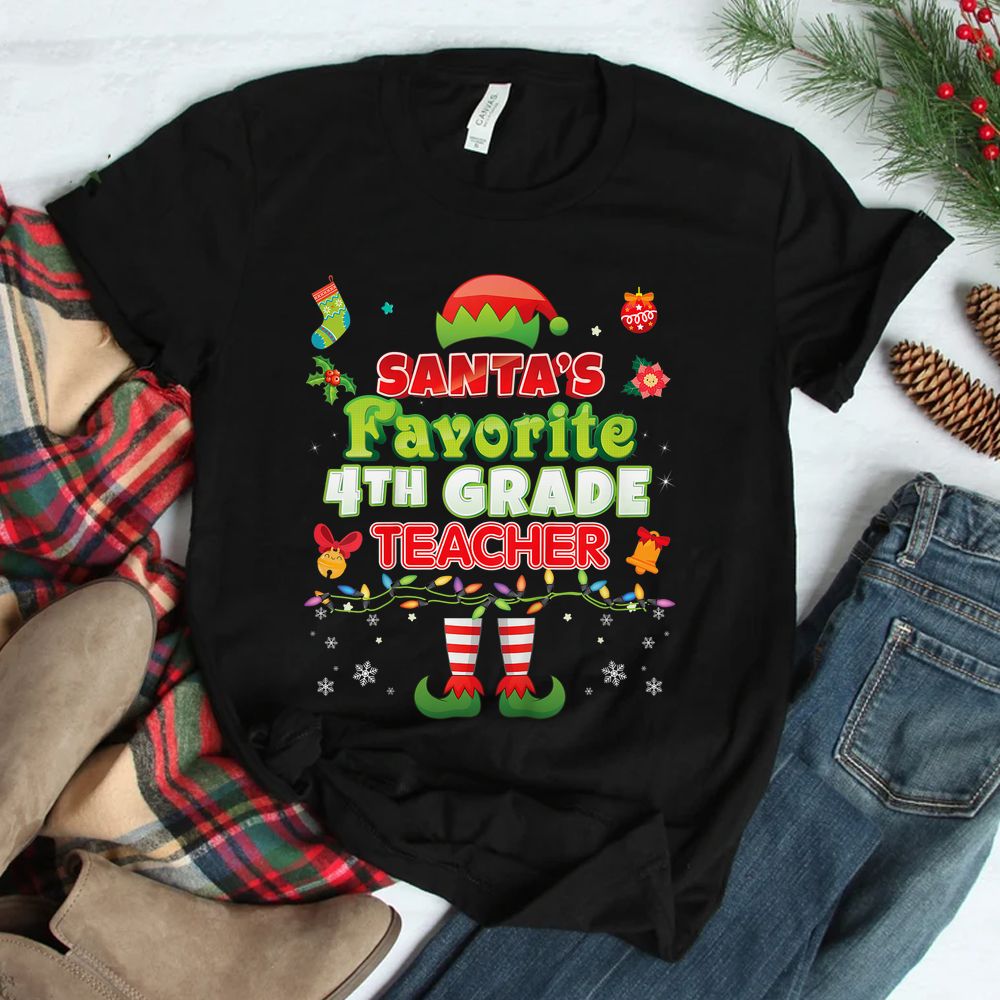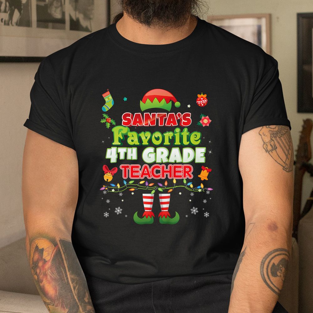 Santa’s Favorite 4th Grade Teacher Santa Elf Shirt