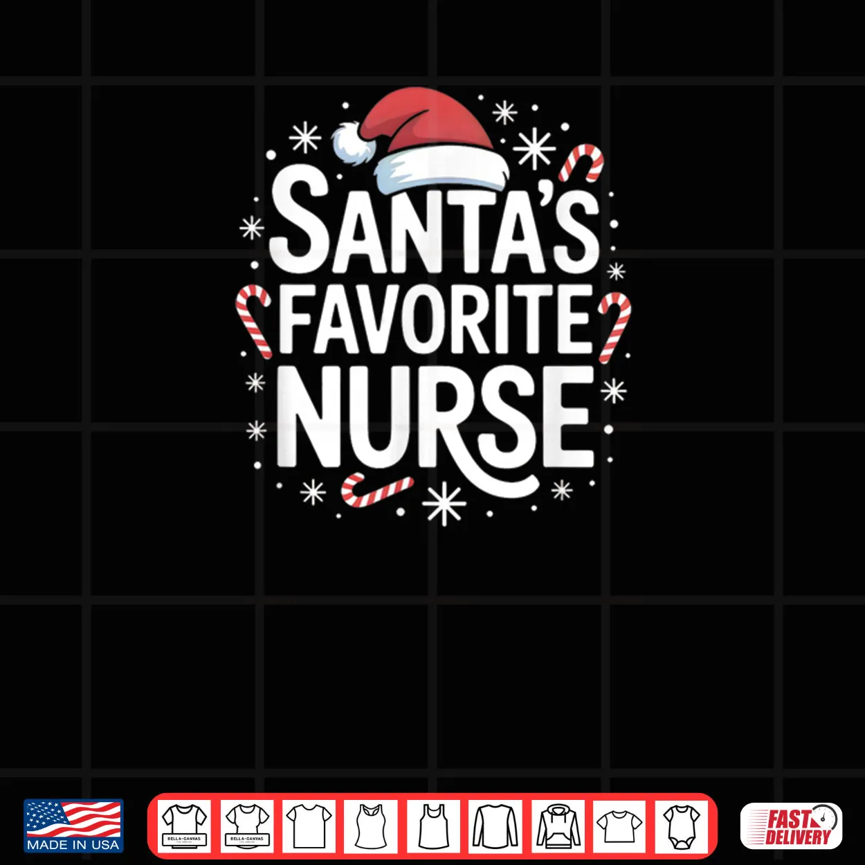 Santa’s Favorite Nurse, Christmas Candy Canes Snowflakes Vibe, Santa’s Favorite Nurse, Nurse, Christmas, Candy Canes, Holiday, Profession, Cute
