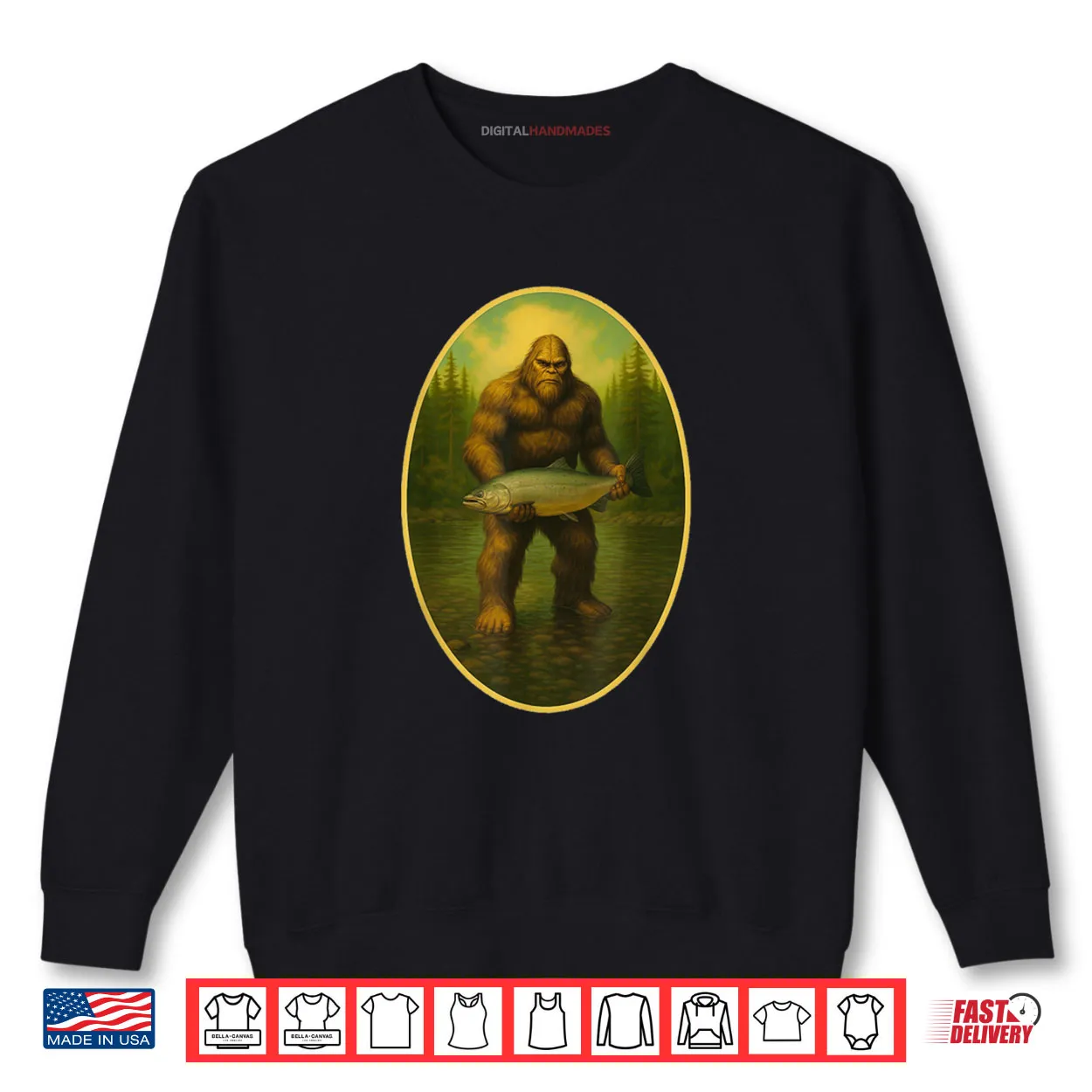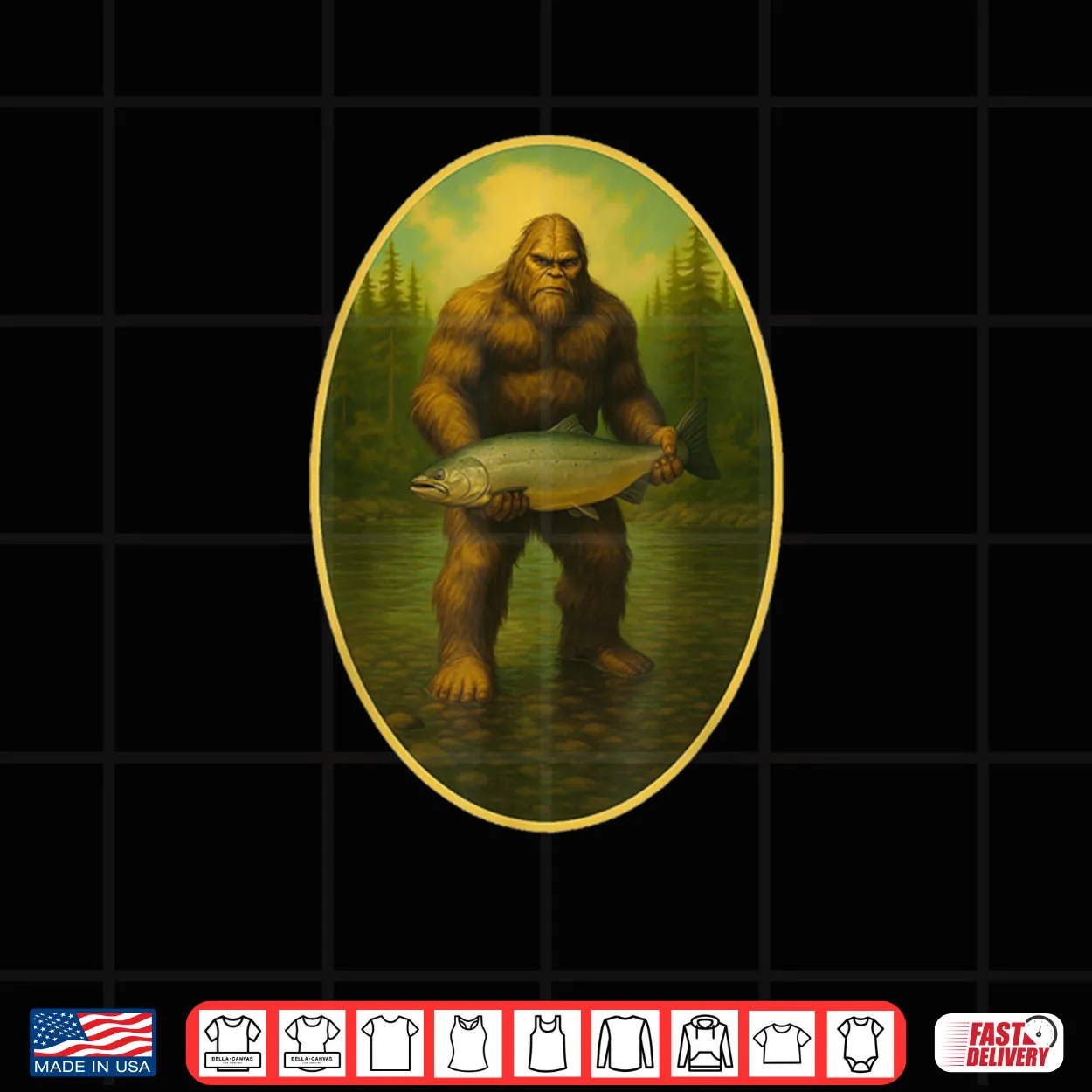 Sasquatch Fishing Tee Bigfoot Salmon Fishing Funny Shirt