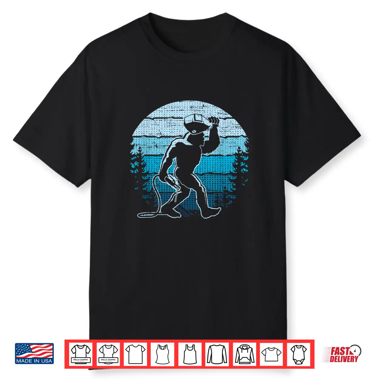 Sasquatch Retro Blue Bigfoot Welder Welding Vintage Shirt