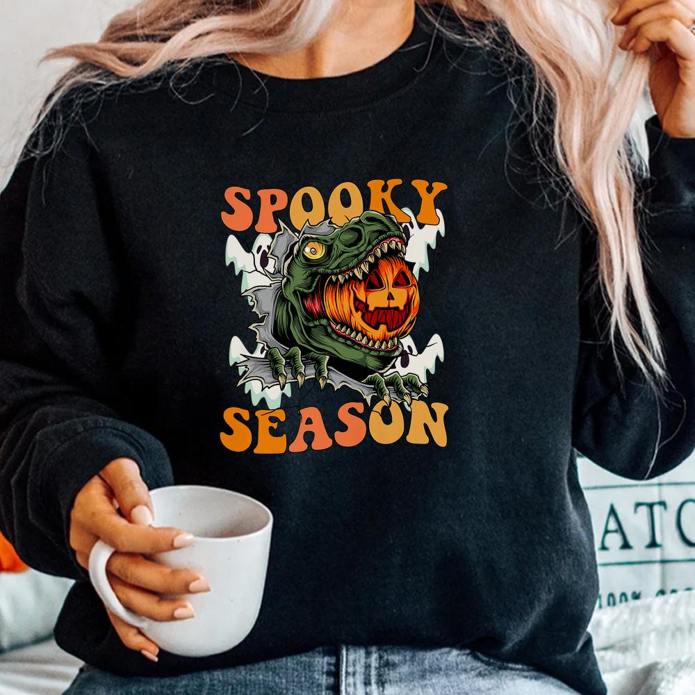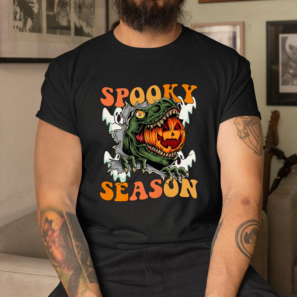 Scary Dinosaur Pumpkin Spooky Season Happy Halloween Shirt, hoodie, sweatshirt, long sleeve and ladies T-shirt