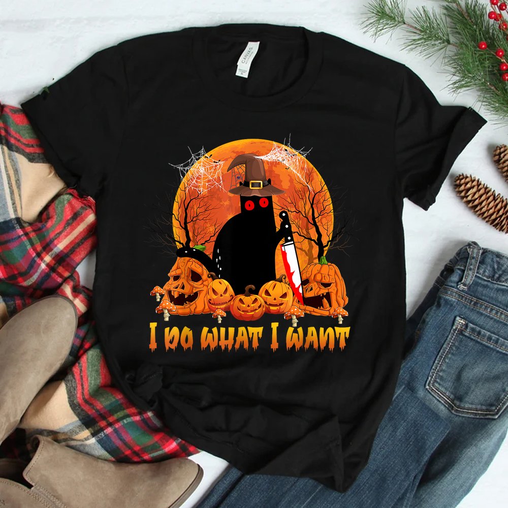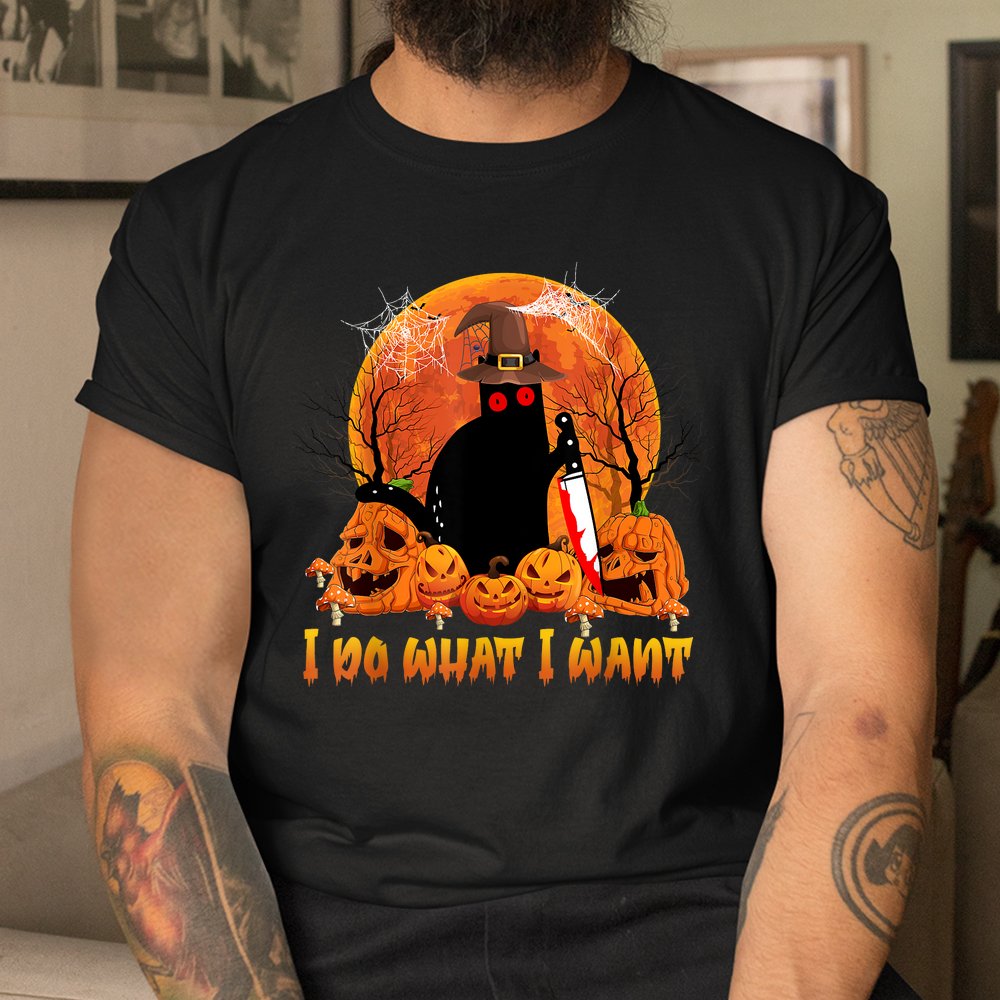 Scary Halloween Black Cat Funny I Do What I Want Cat Shirt, hoodie, sweatshirt, long sleeve and ladies T-shirt