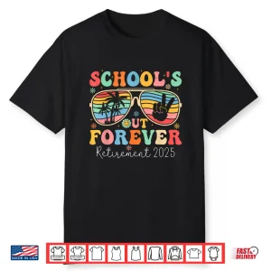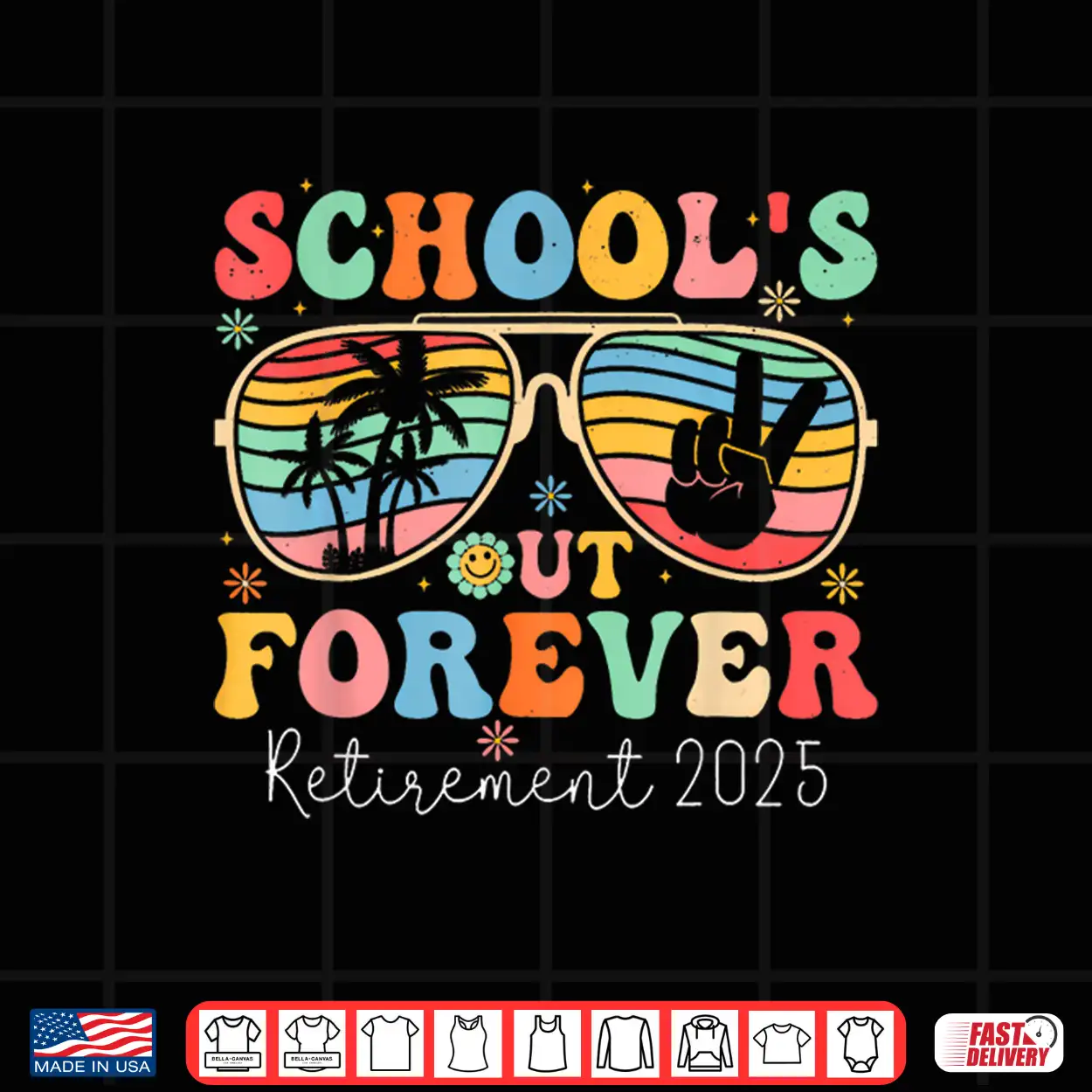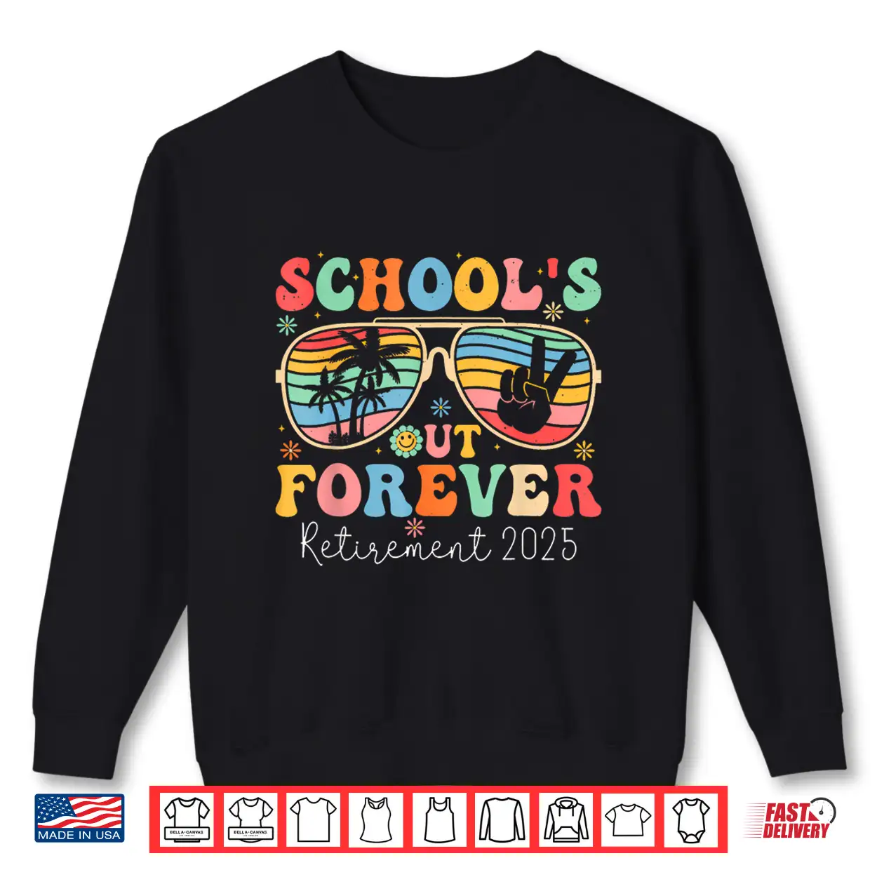 School’S Out Forever Retired Teacher 2025 Groovy Retirement Shirt