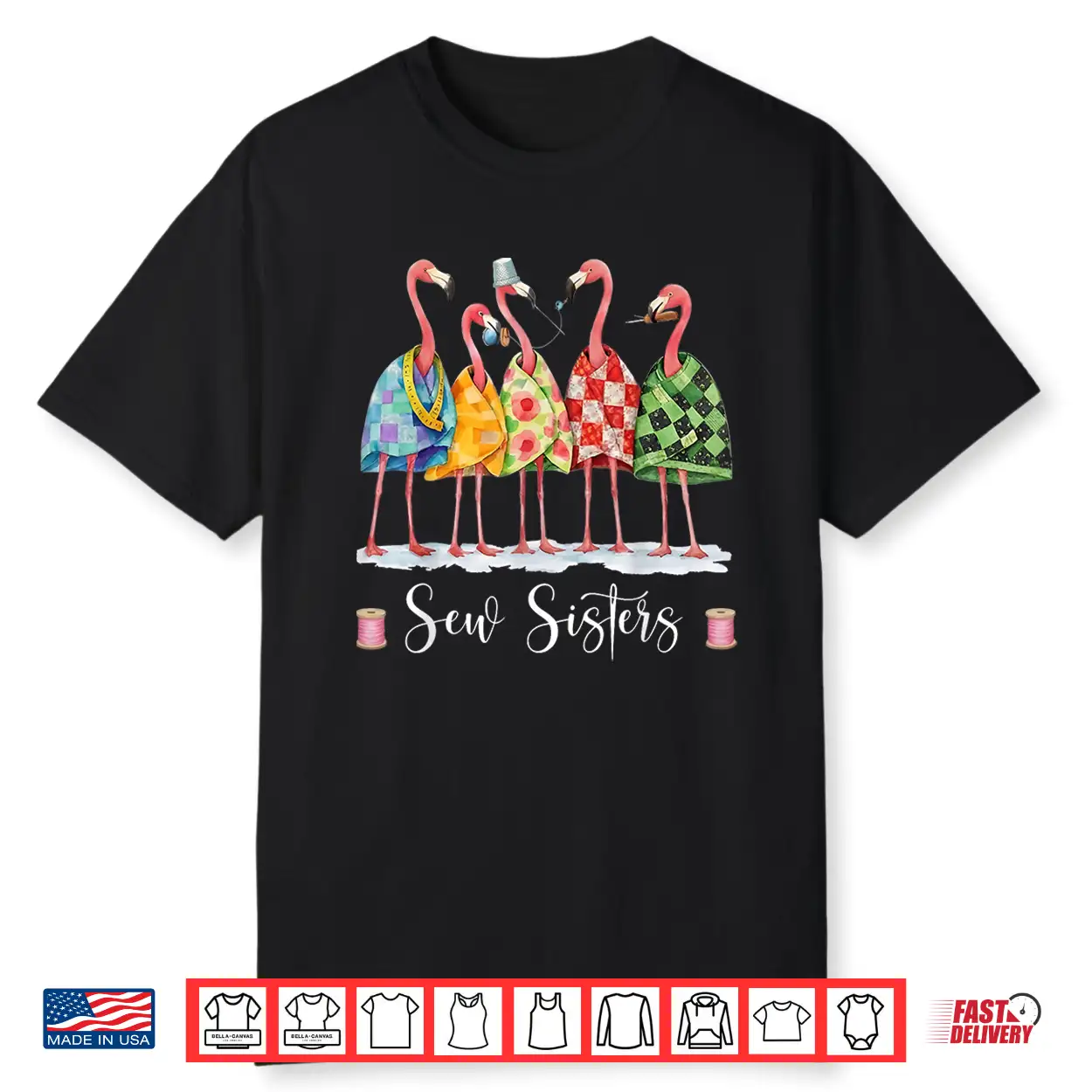 Sew Sisters Funny Flamingo Quilting Sewing Club Craft Shirt