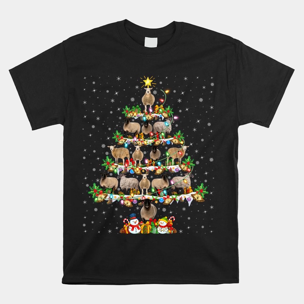 Sheep Xmas Lighting Santa Sheep Christmas Tree Shirt