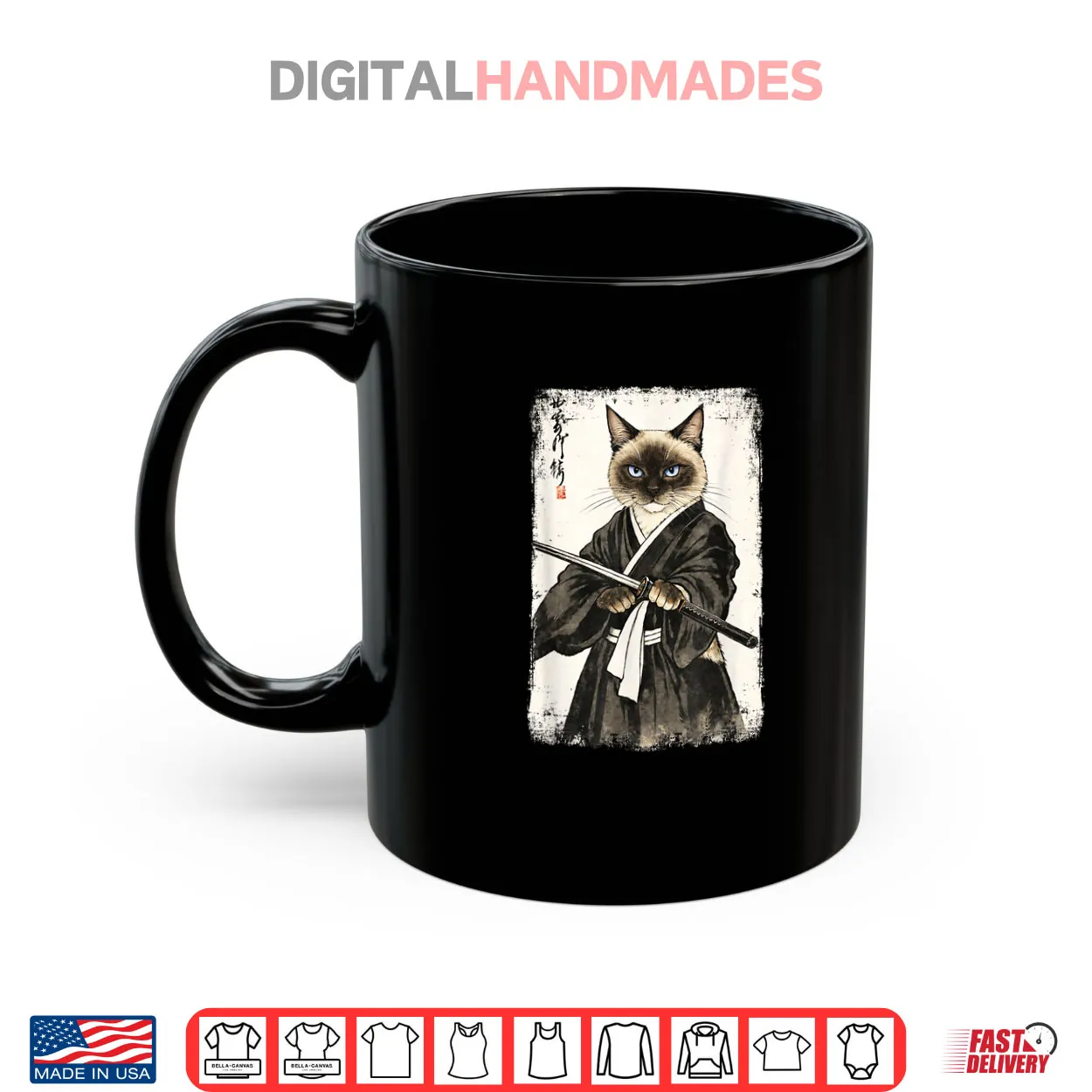 siamese cat, samurai warrior, japanese art, ukiyo-e, bushido, animal art, feline, martial arts, oriental, shirt
