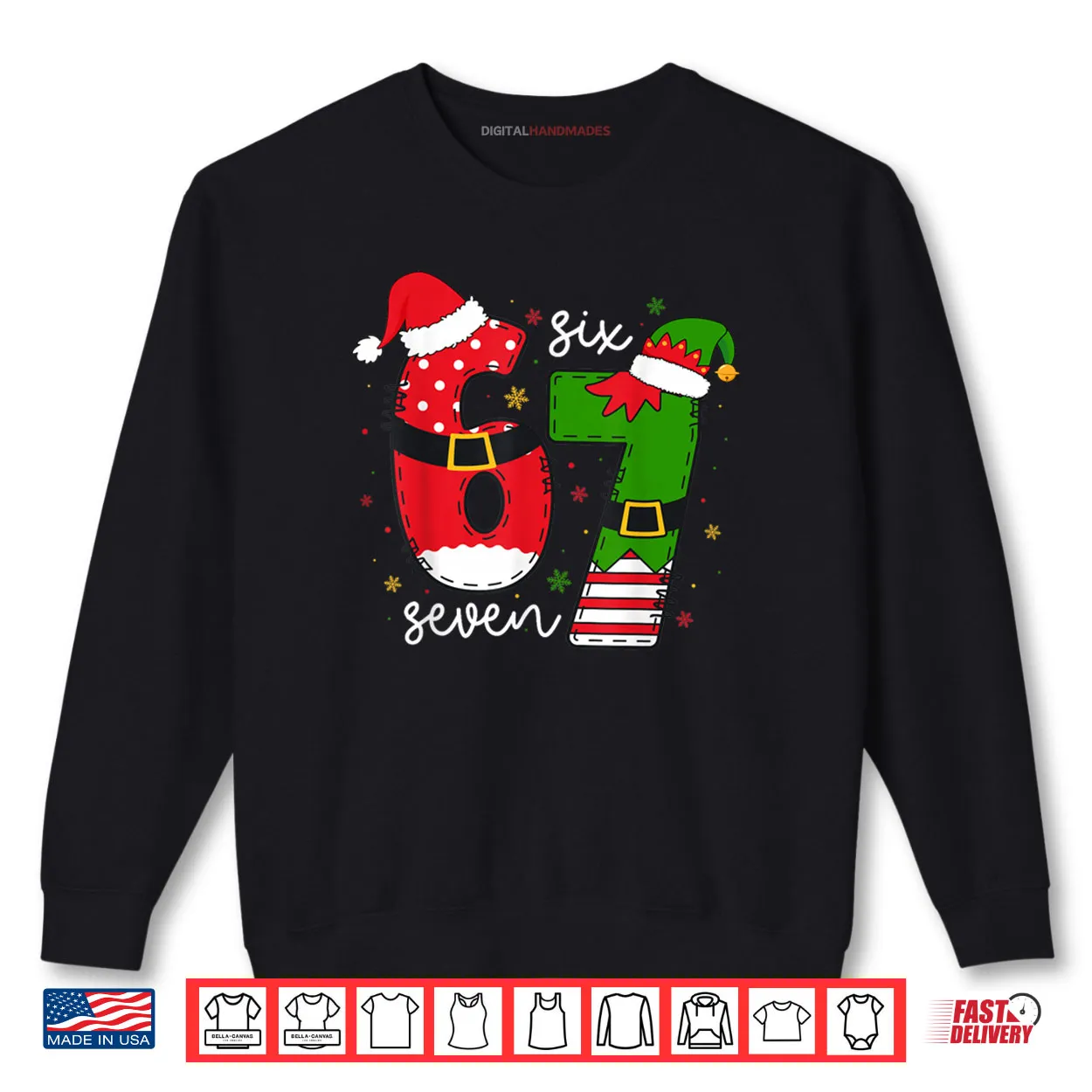 Six Seven 67 Meme 6 7 Elf Santa Christmas Pajamas Funny Shirt