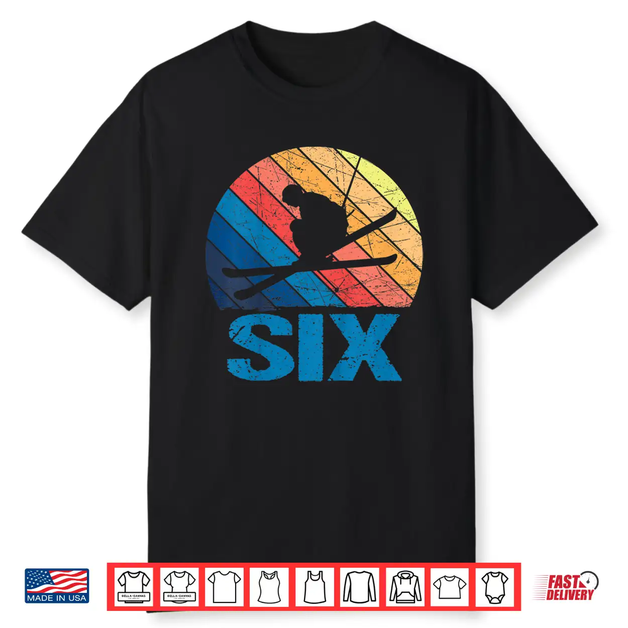 Sixth Birthday Retro Ski Skiing Six Year Old Graphic Shirt