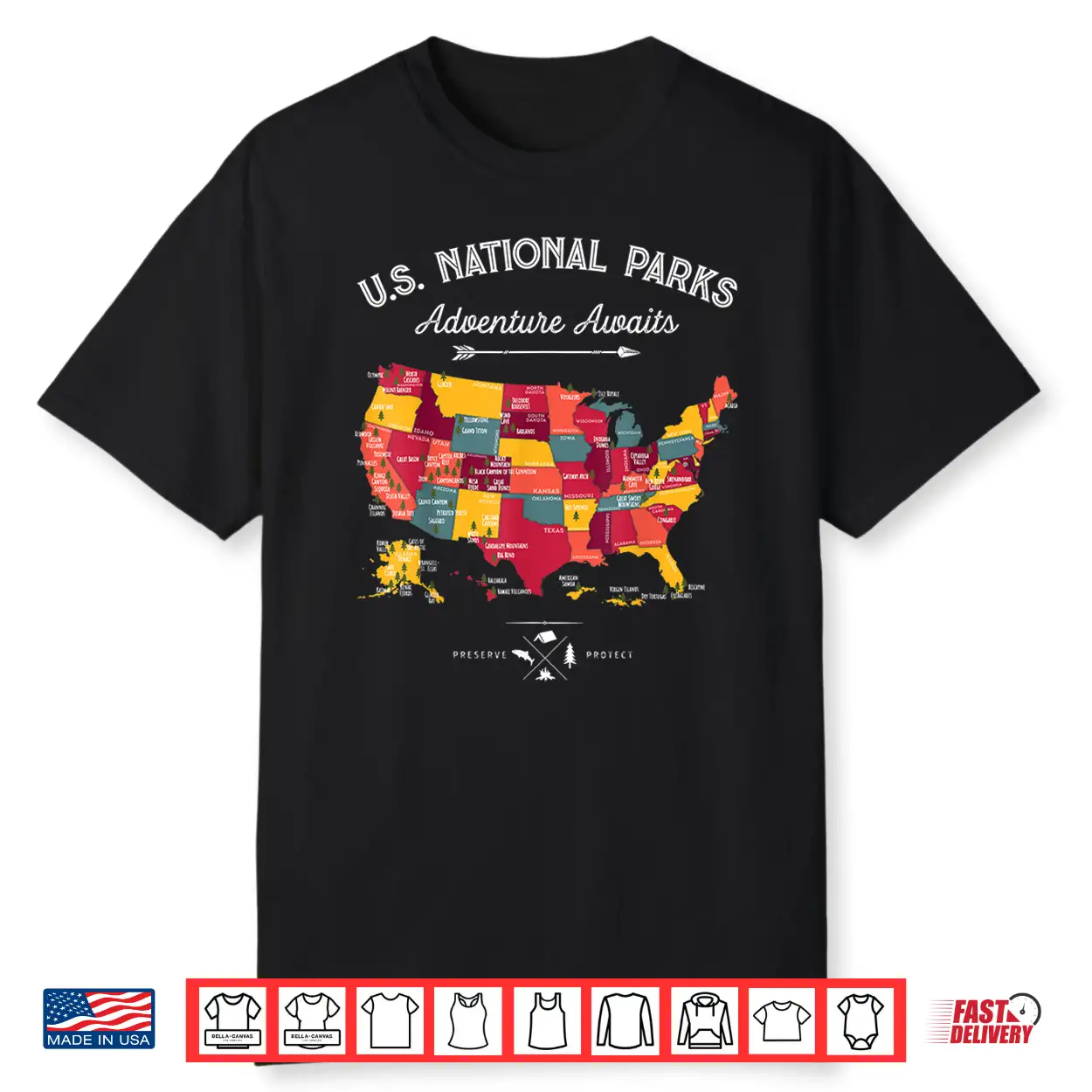 Sixty Three National Parks Map Us Park Retro Vintage Hiking Shirt