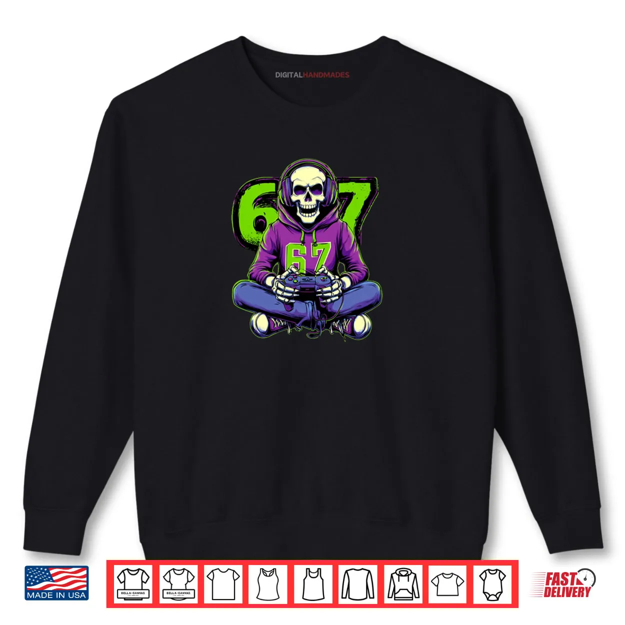 skeleton 67, gamer, retro controller, 67 meme, video games, edgy art, gaming humor, vintage, geek, shirt