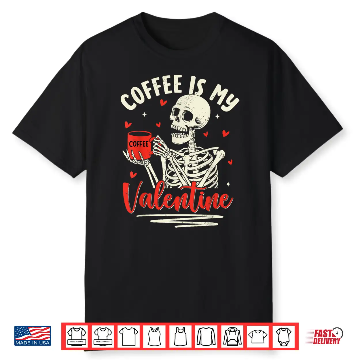 Skeleton Coffee Is My Valentine Funny Valentines Day Shirt