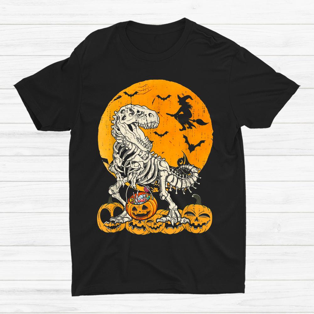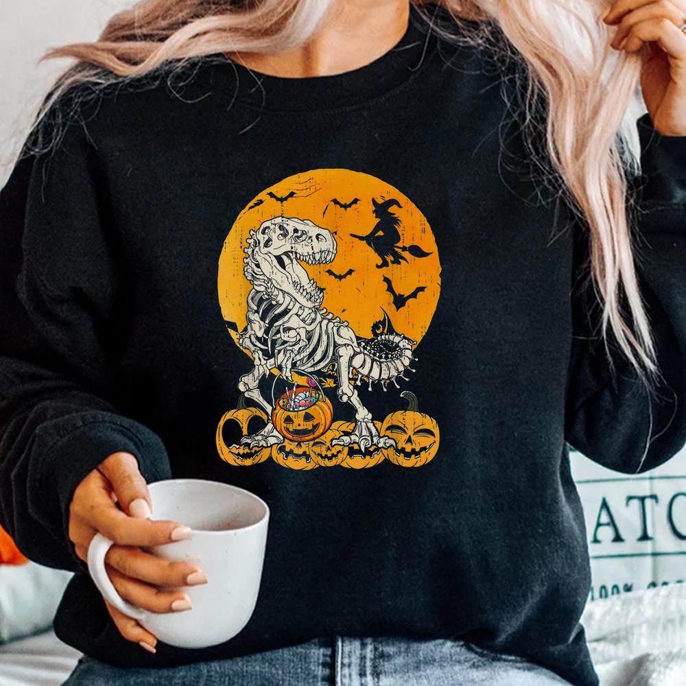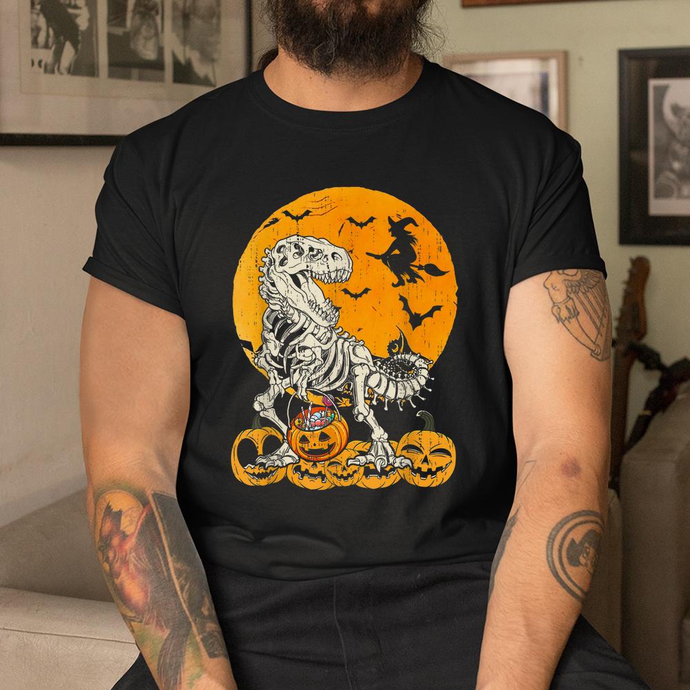 Skeleton Dinosaur Trex Dino Pumpkins Moon Halloween Shirt, hoodie, sweatshirt, long sleeve and ladies T-shirt
