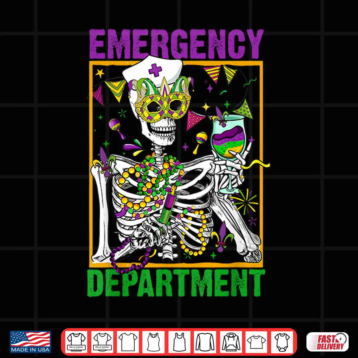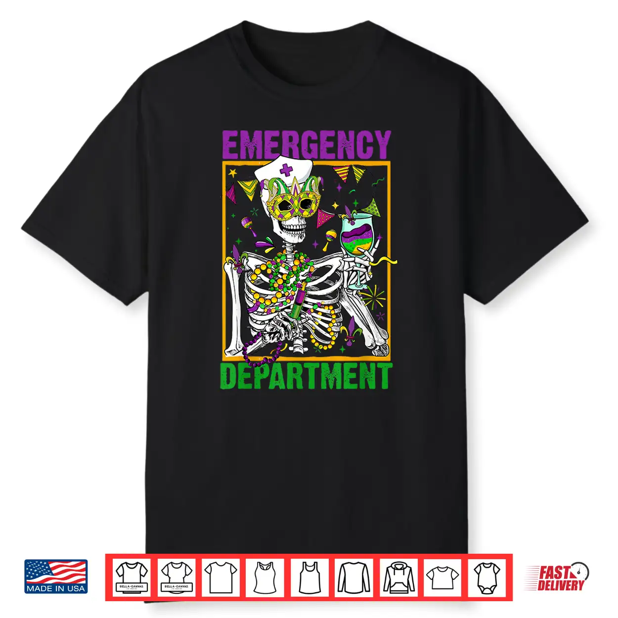 Skeleton Emergency Department Mardi Gras Er Nurse New Orlean Shirt
