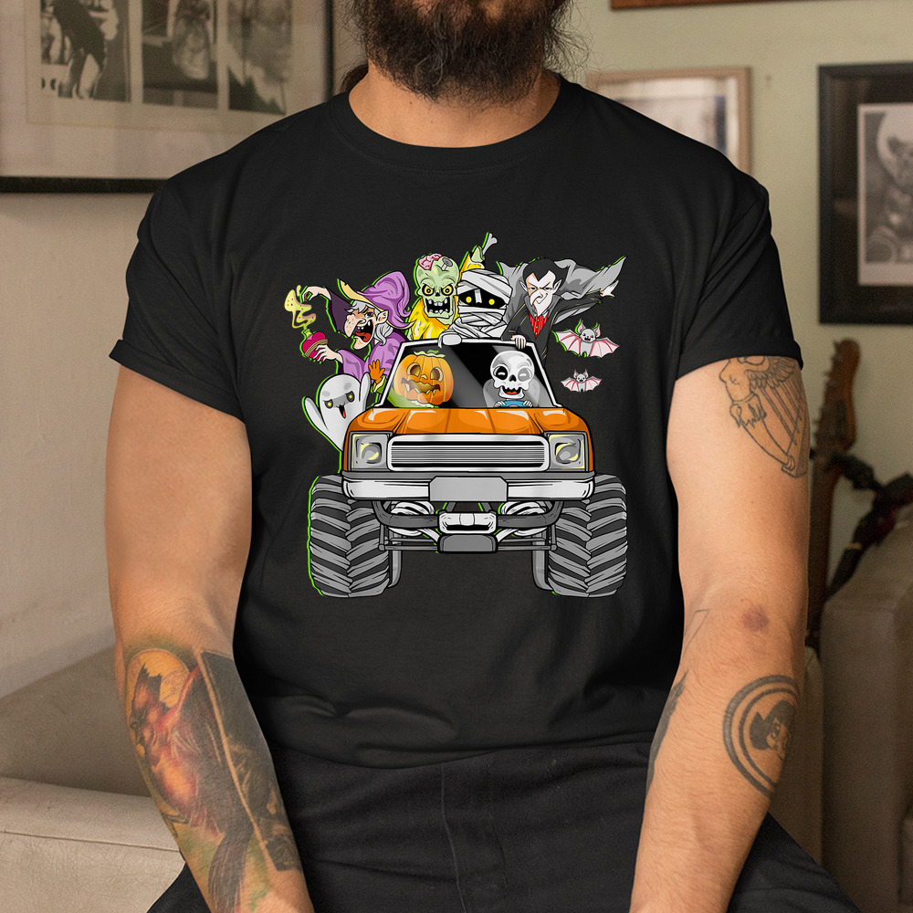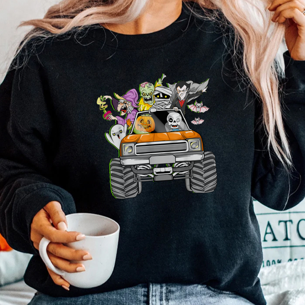 Skeleton Mummy Witch Riding Truck Halloween Shirt, hoodie, sweatshirt, long sleeve and ladies T-shirt