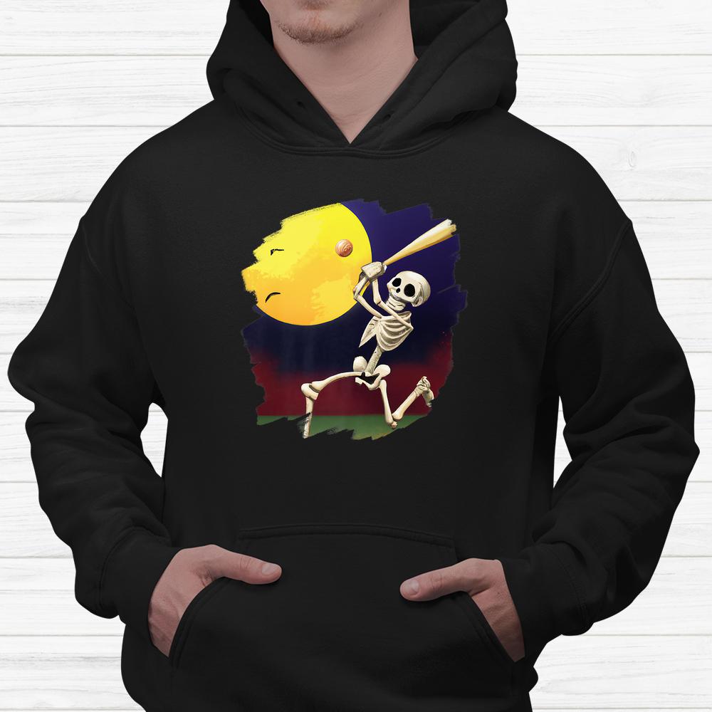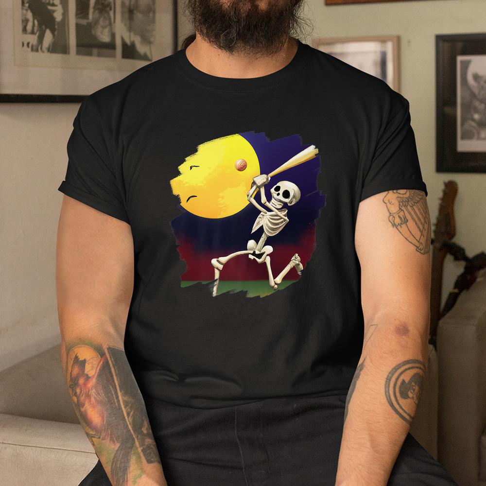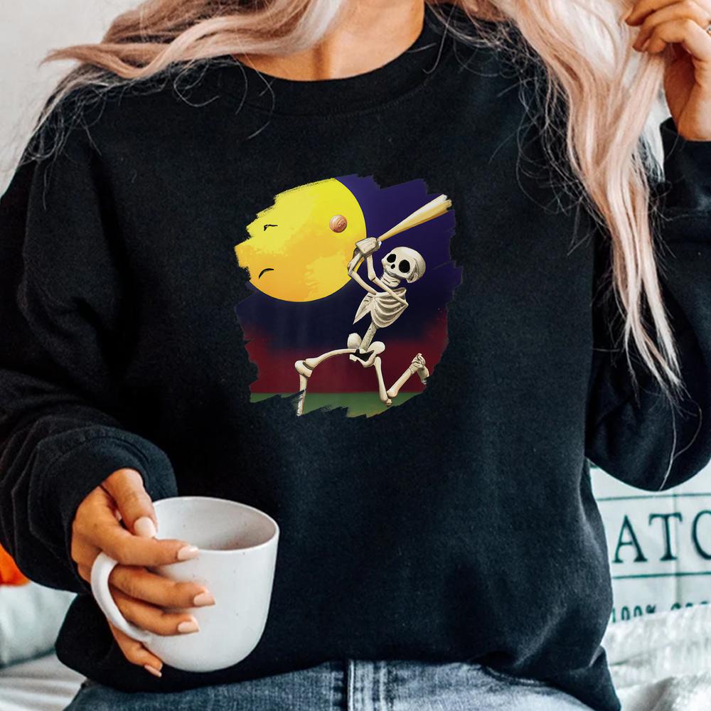 Skeleton Playing Baseball Halloween Baseball Shirt, hoodie, sweatshirt, long sleeve and ladies T-shirt