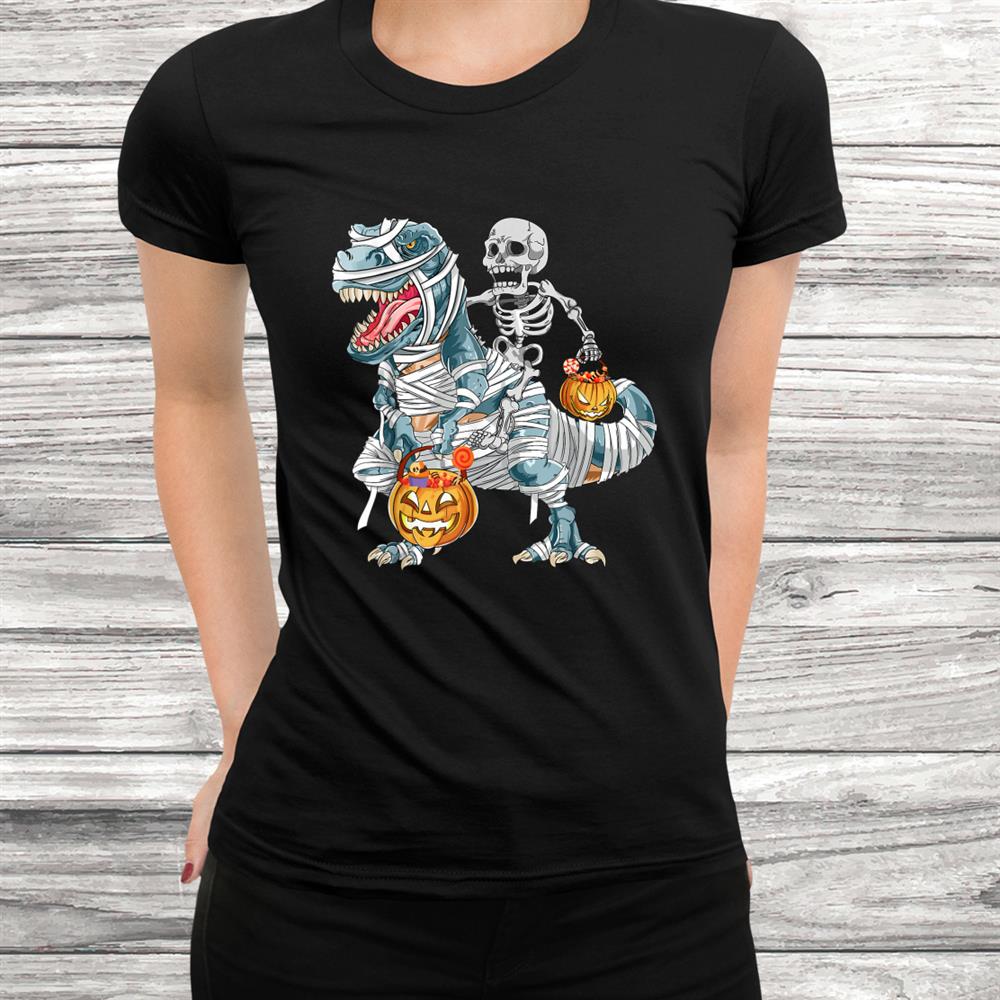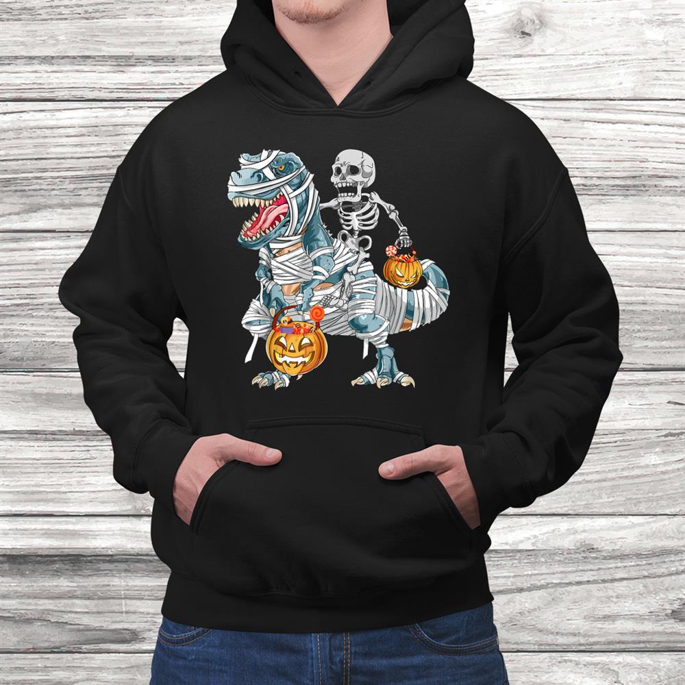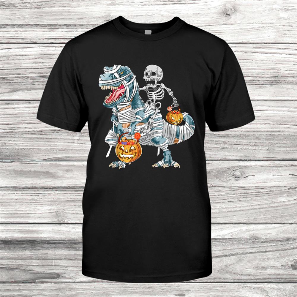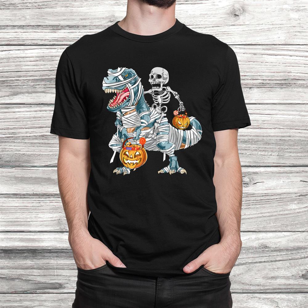 Skeleton Riding Mummy Dinosaur Halloween T Rex Kids Boys Men Shirt, hoodie, sweatshirt, long sleeve and ladies T-shirt