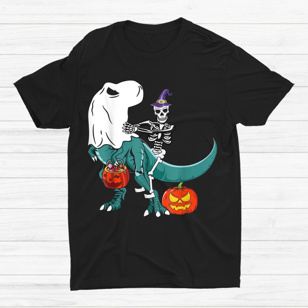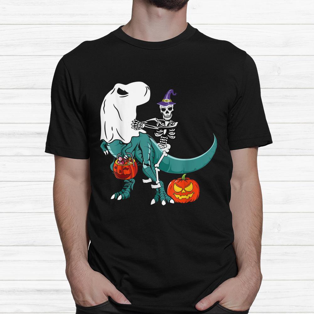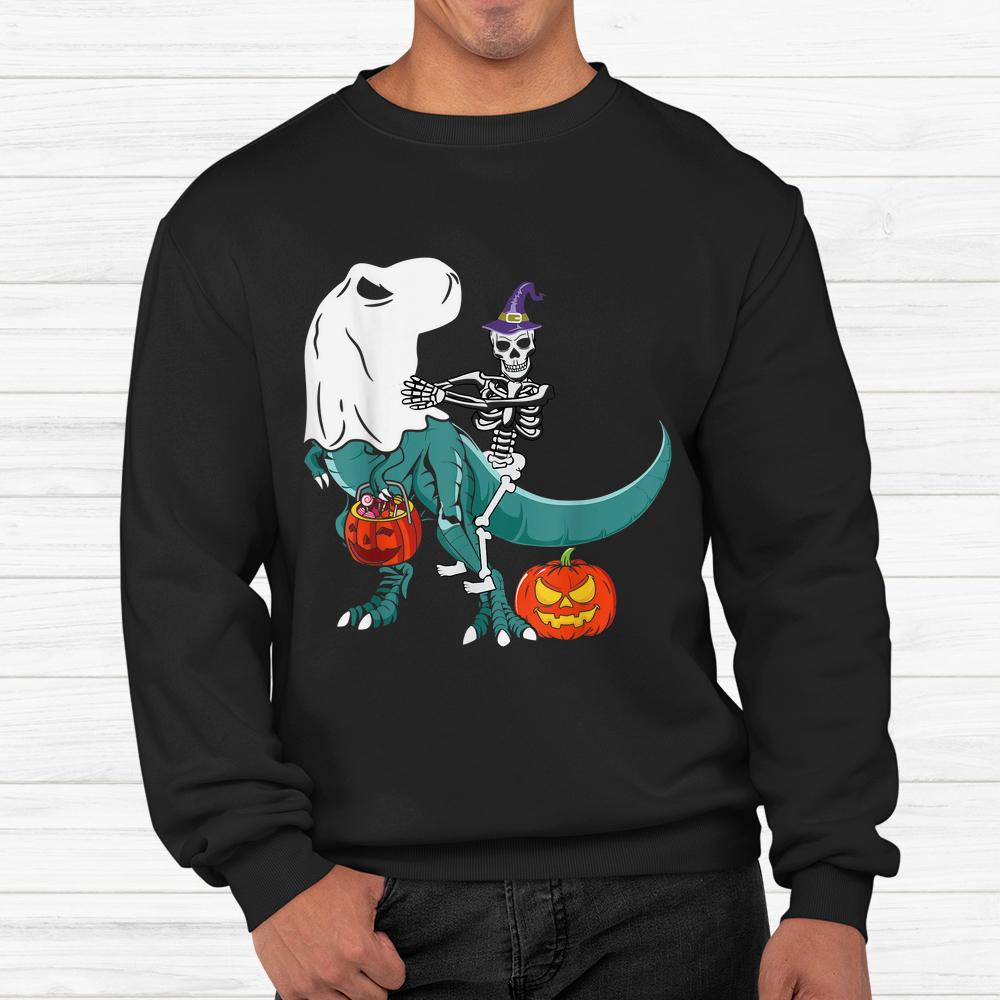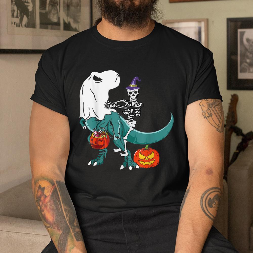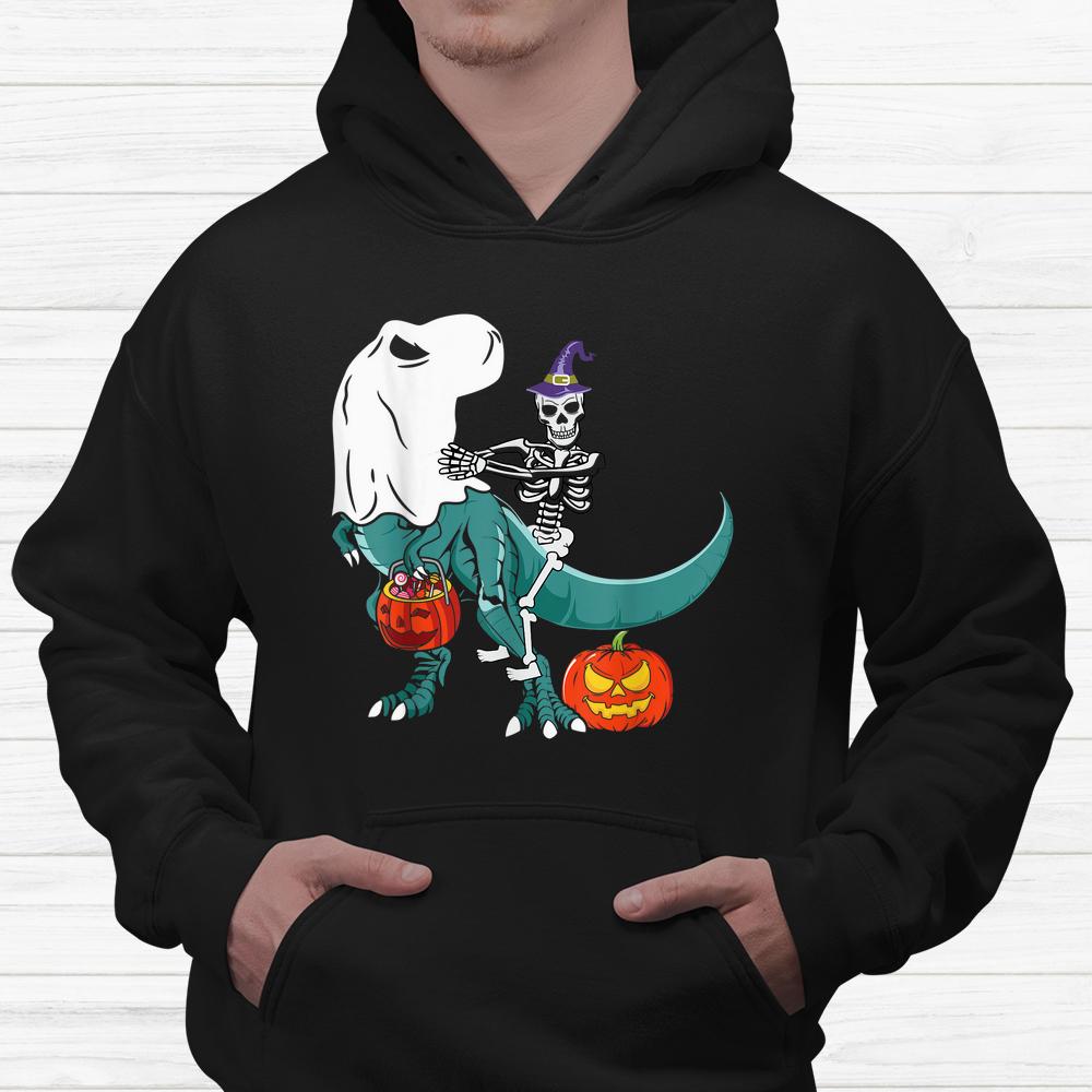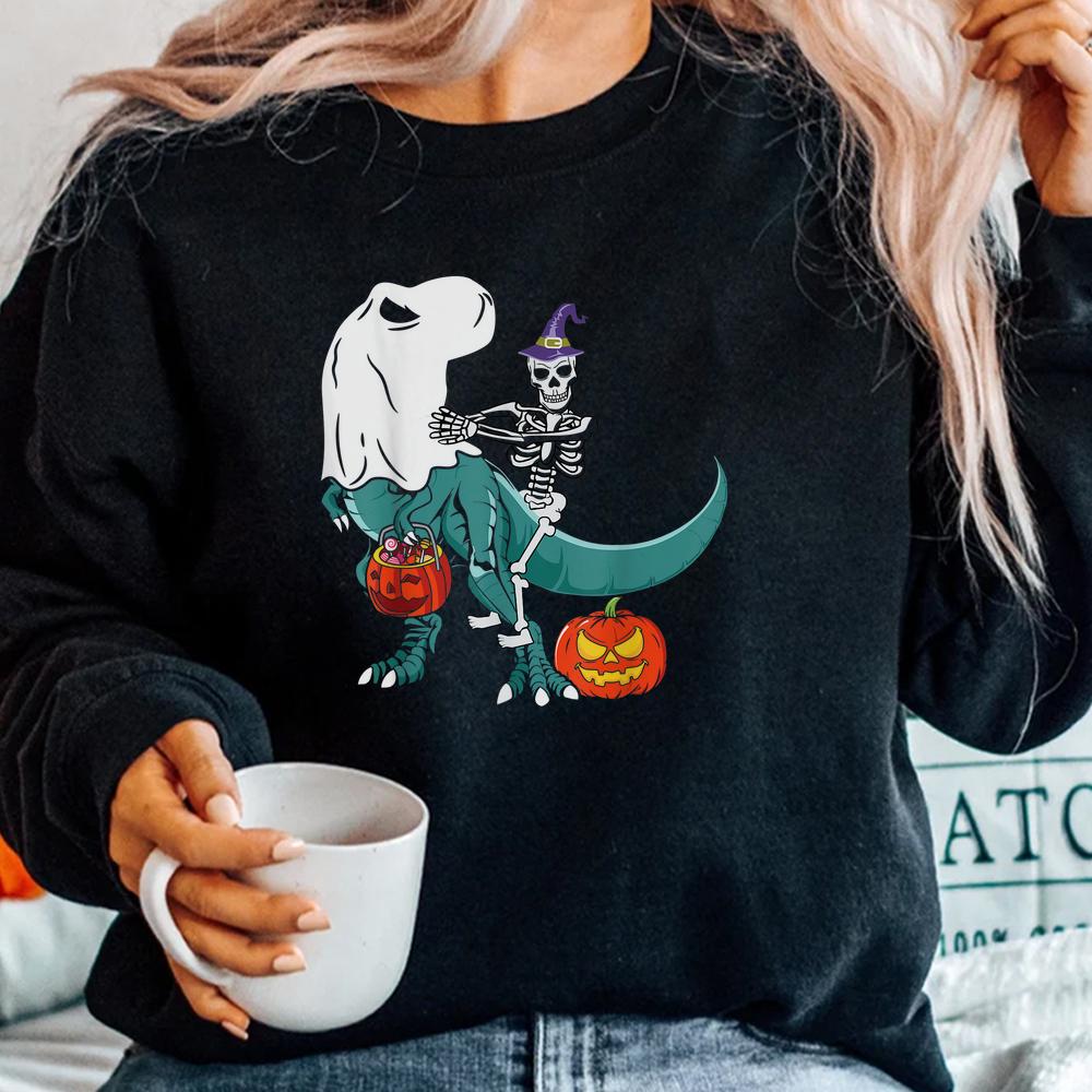 Skeleton Riding Mummy Dinosaur T Rex Halloween Pumpkin Shirt, hoodie, sweatshirt, long sleeve and ladies T-shirt