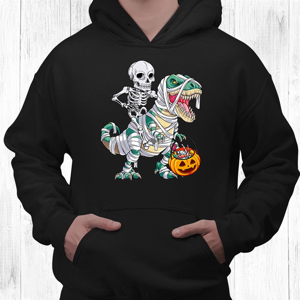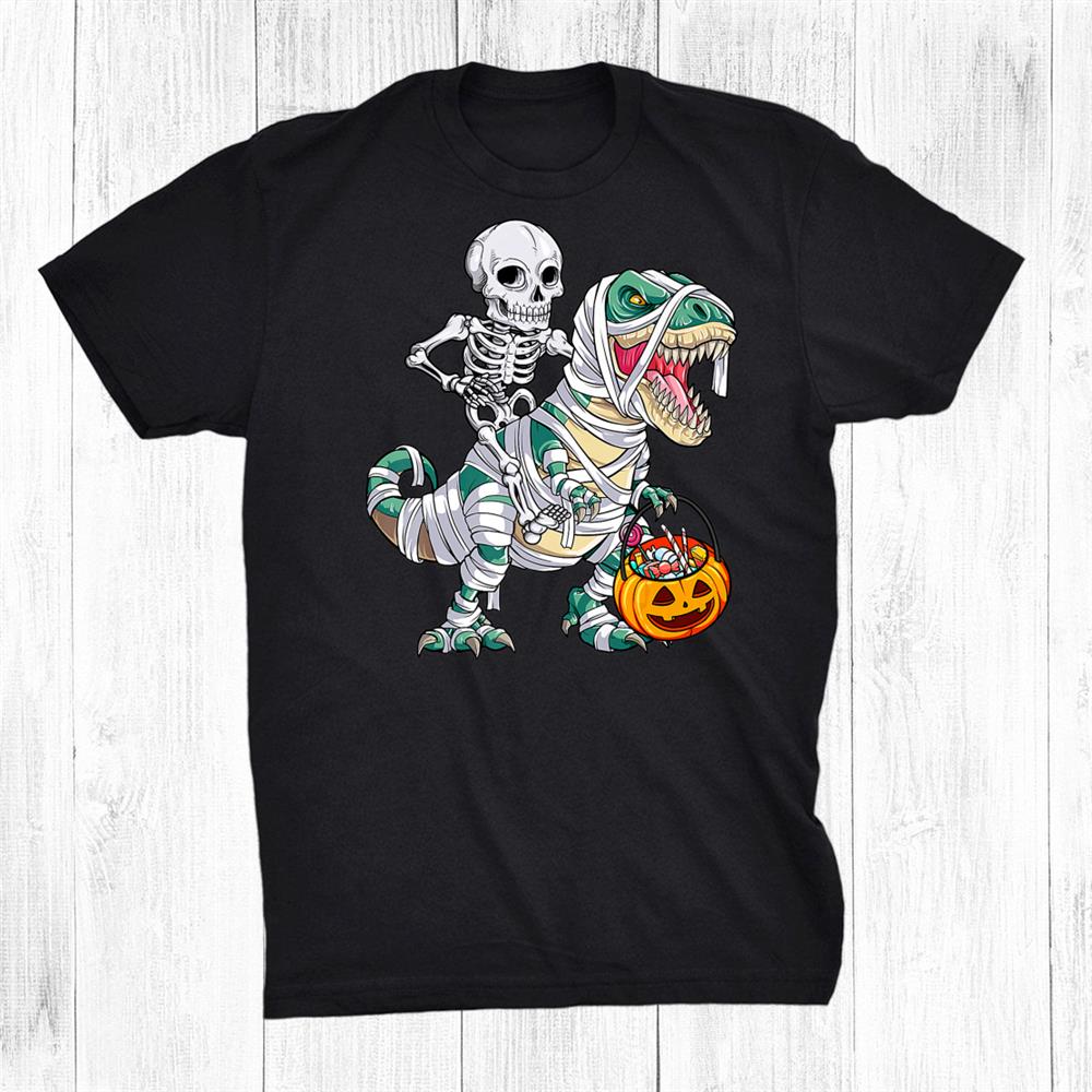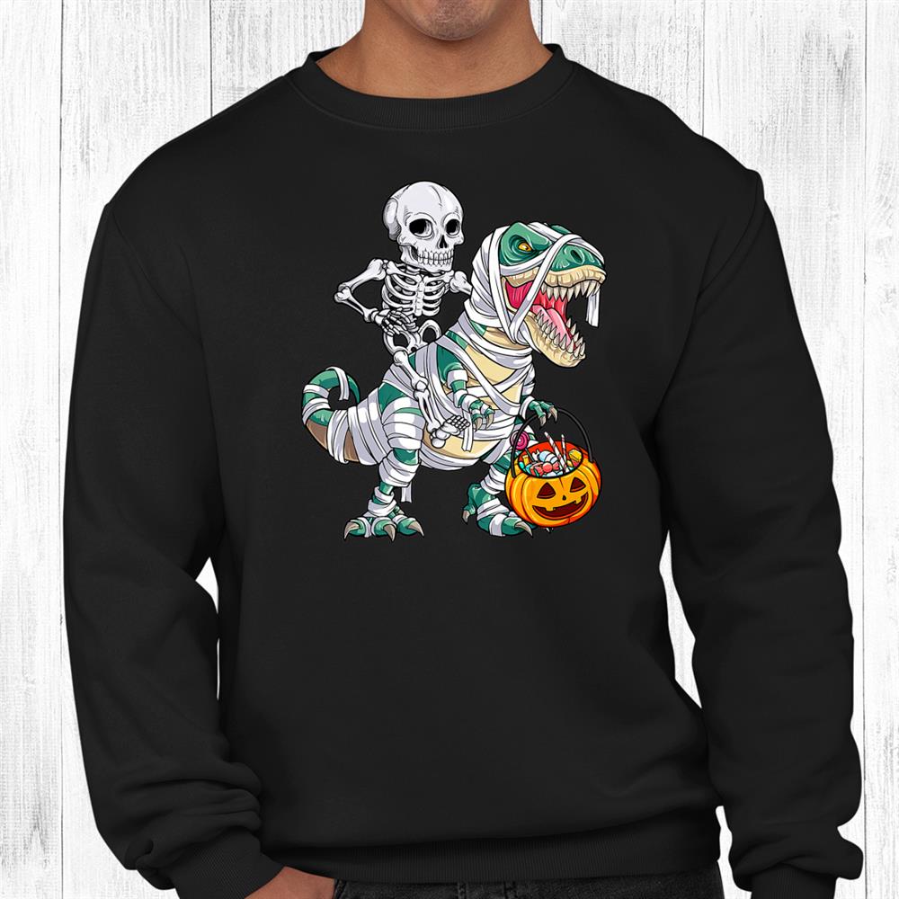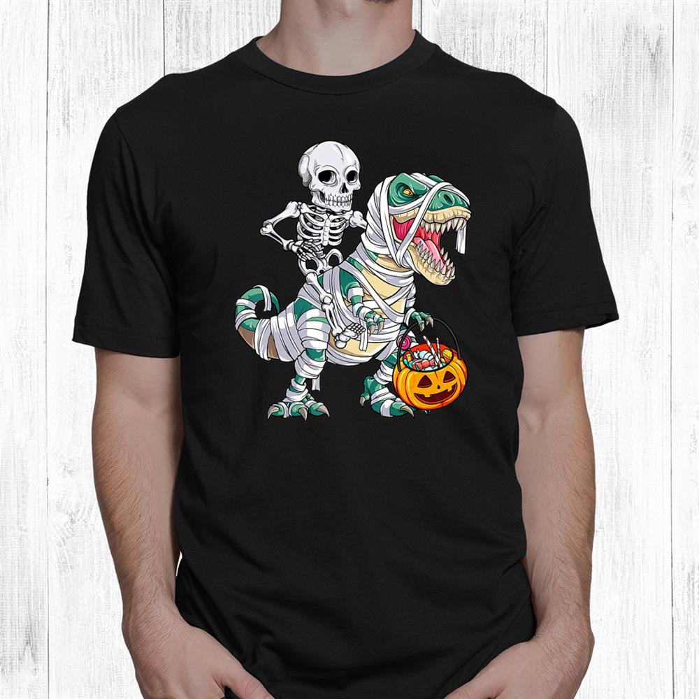 Skeleton Riding Mummy Dinosaur T Rex Halloween Shirt, hoodie, sweatshirt, long sleeve and ladies T-shirt