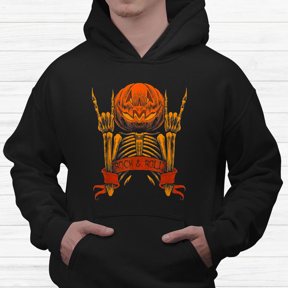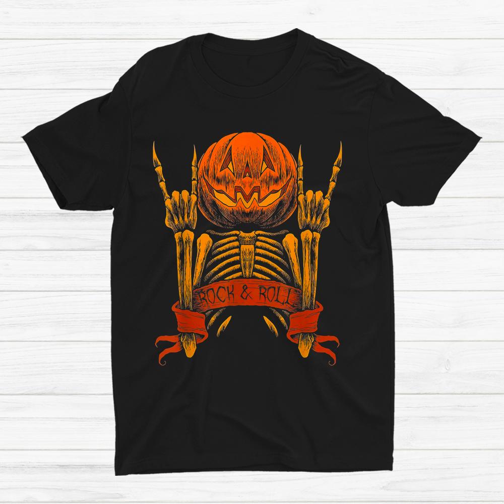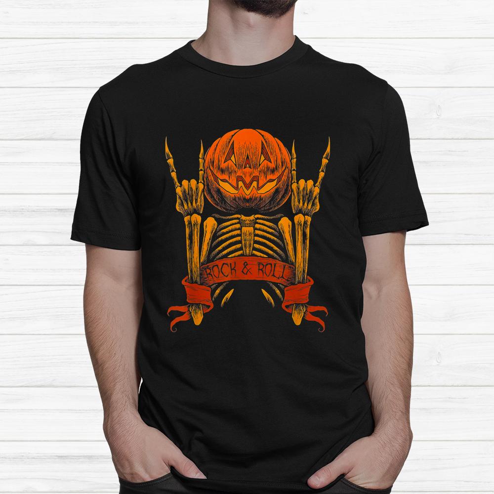 Skeleton Rocker Rock And Roll Pumpkin Head Halloween Shirt