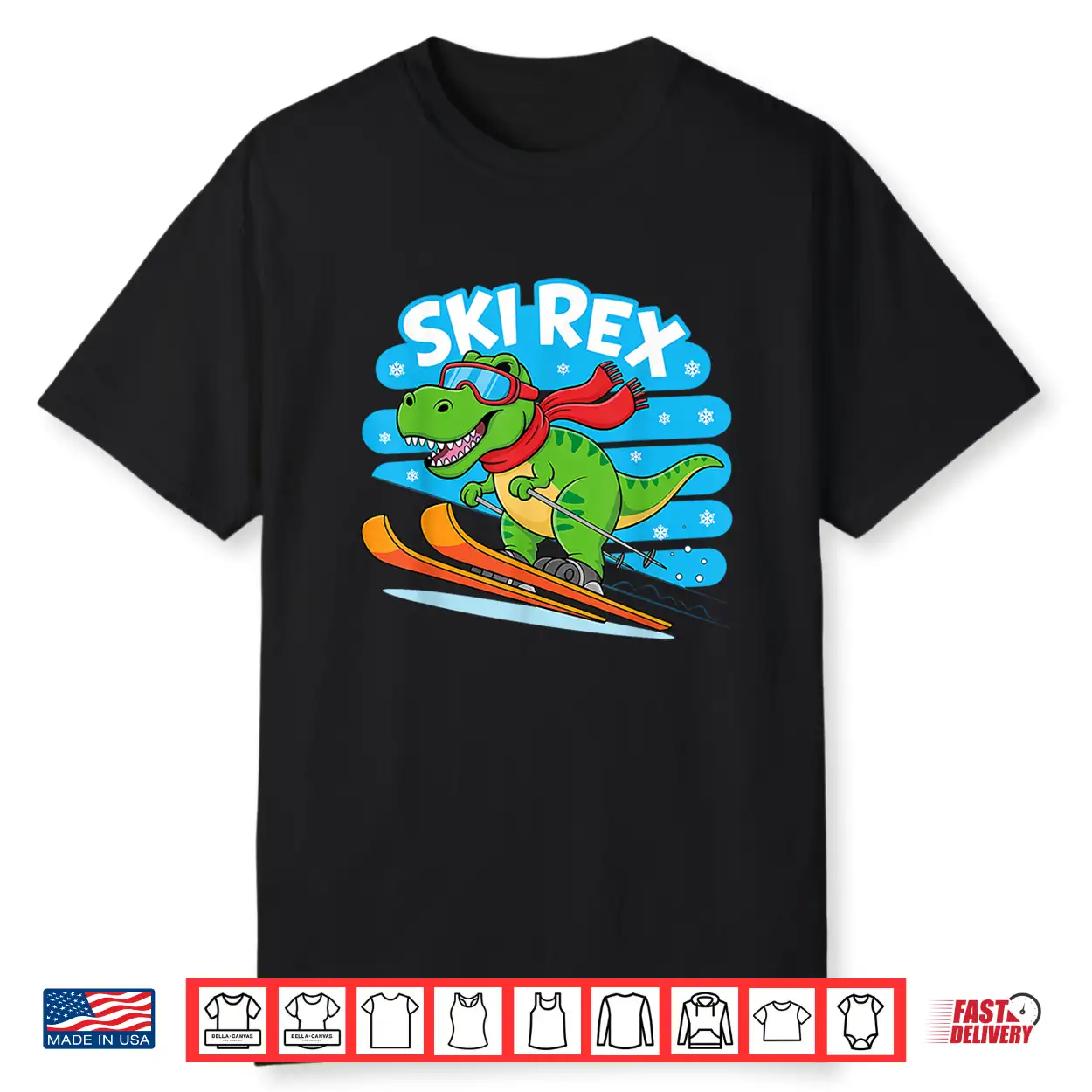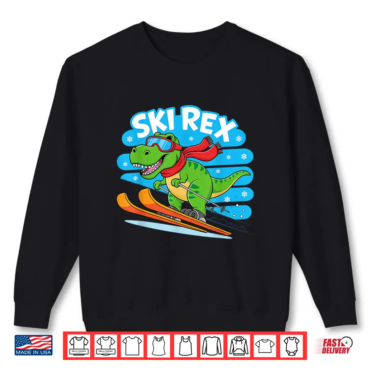 Ski Rex Funny Skiing Dinosaur Winter Sports Design For Kids Shirt