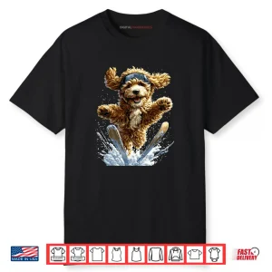 Skiing Goldendoodle in Snow and Snowflakes Snowy Winter Dog Shirt