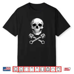 Skull And Pistons Mechanical Engine Industrial Graphic Shirt
