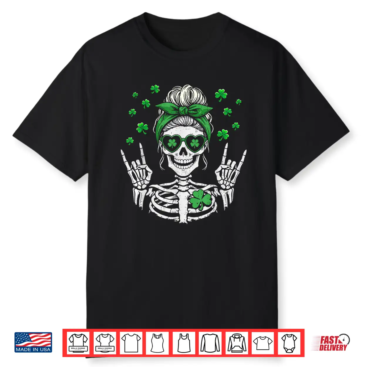 Skull Skeleton Shamrock St Patricks Day Women Girl St Pattys Shirt