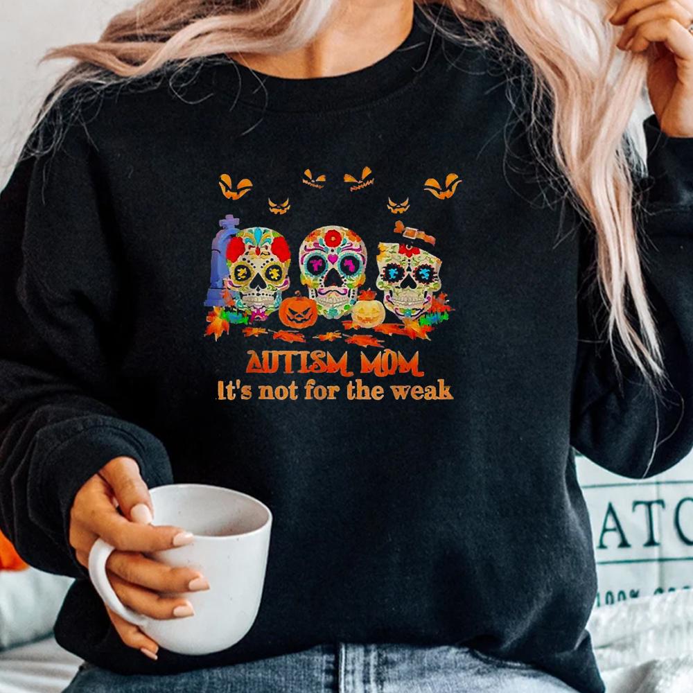 Skulls Pumpkin Autism Mom Its Not For The Weak Halloween Shirt, hoodie, sweatshirt, long sleeve and ladies T-shirt