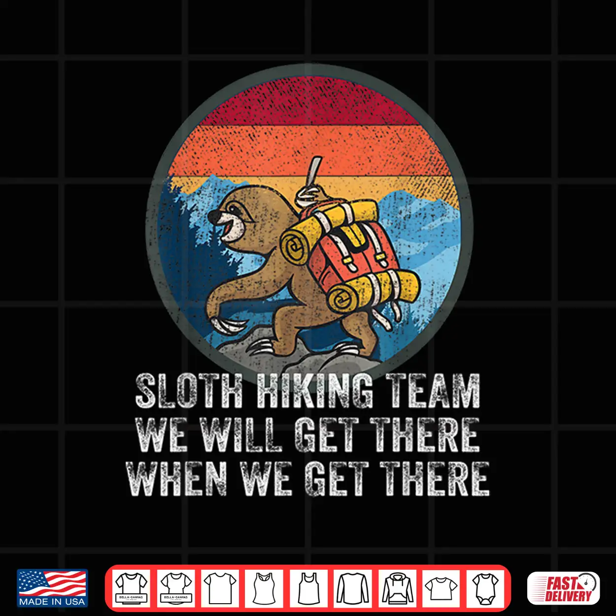 Sloth Hiking Team We Will Get There When We Get There Kids Shirt