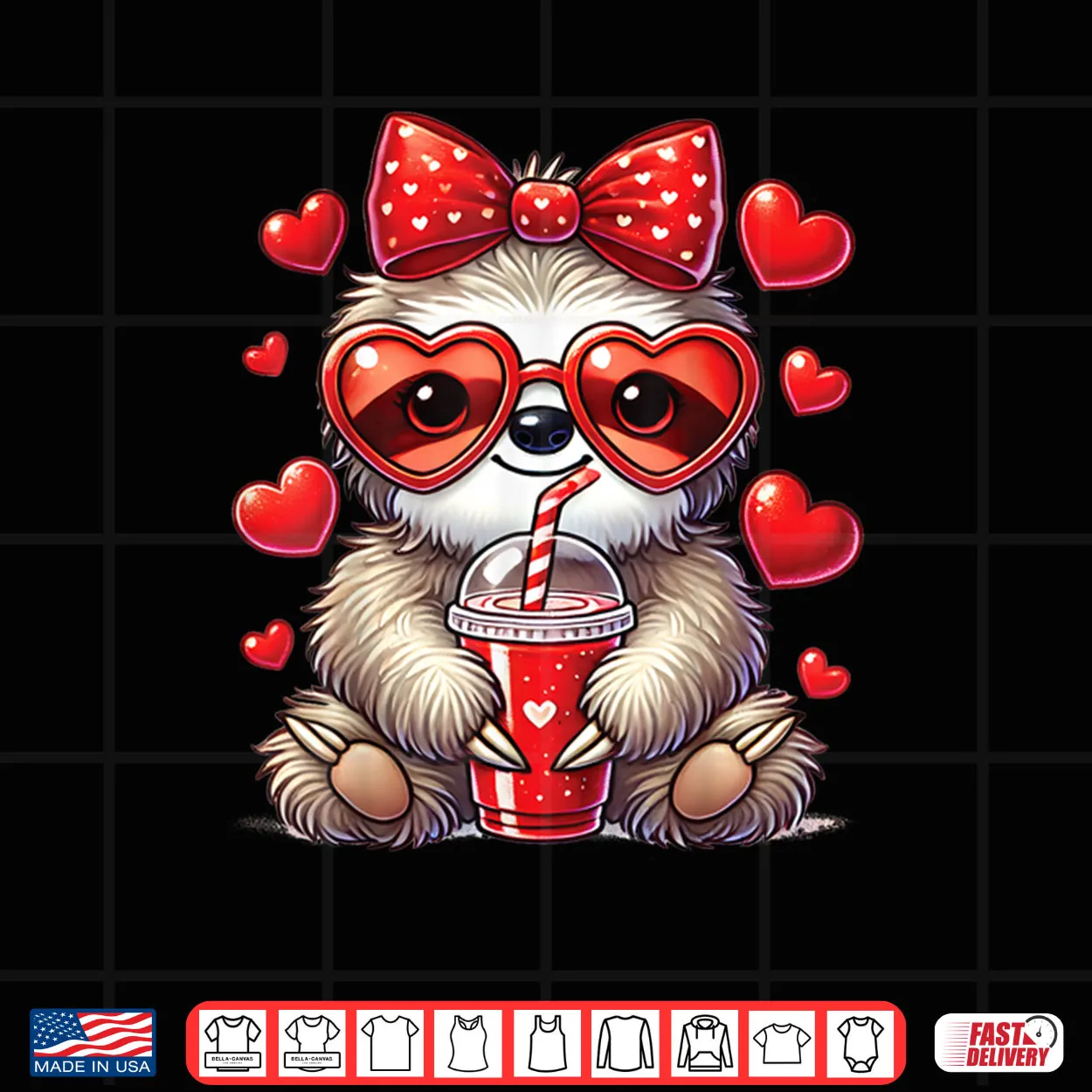 Sloth holding heart drinking Coffee sloth valentines Day Bow Shirt