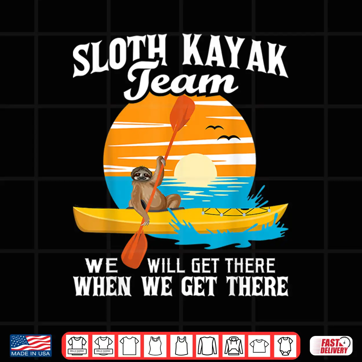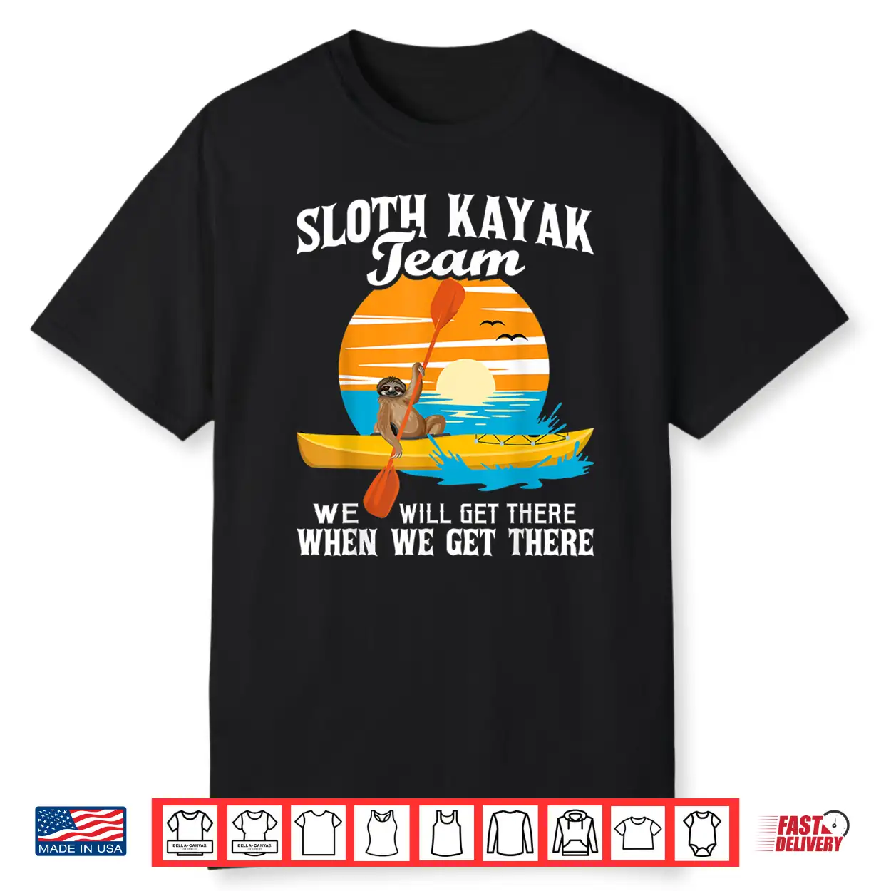 Sloth Kayak Team We Will Get There Funny Kayaking Kayaker Shirt