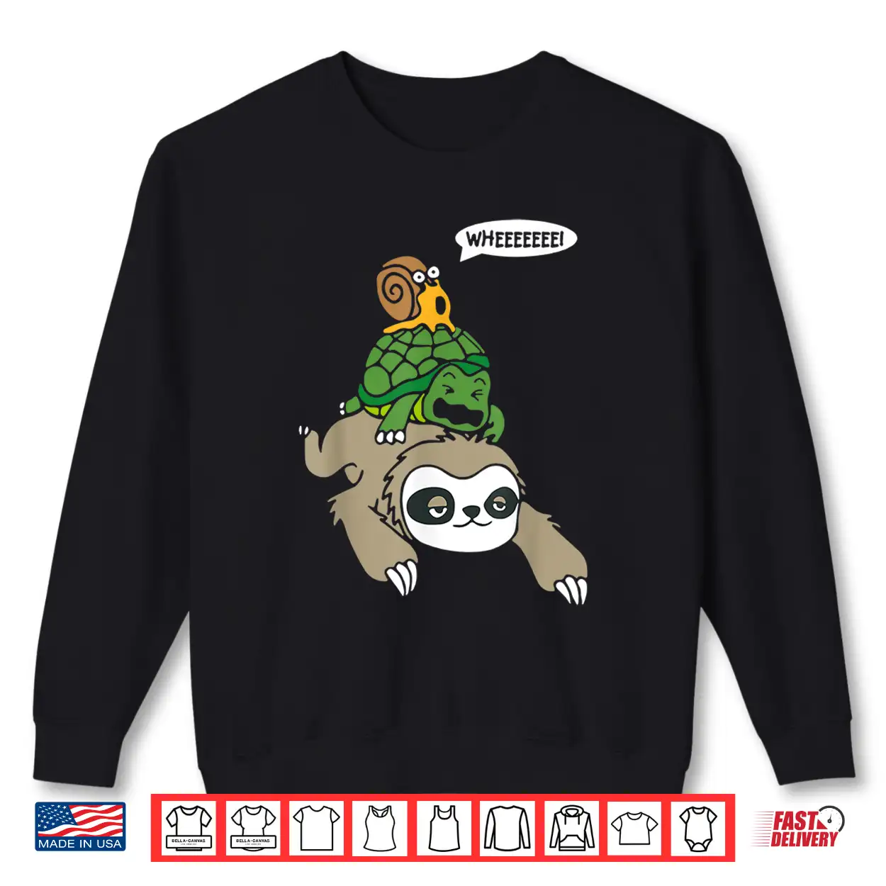 Sloth Turtle Snail Piggyback T Shirt Animal Running Wild Tee