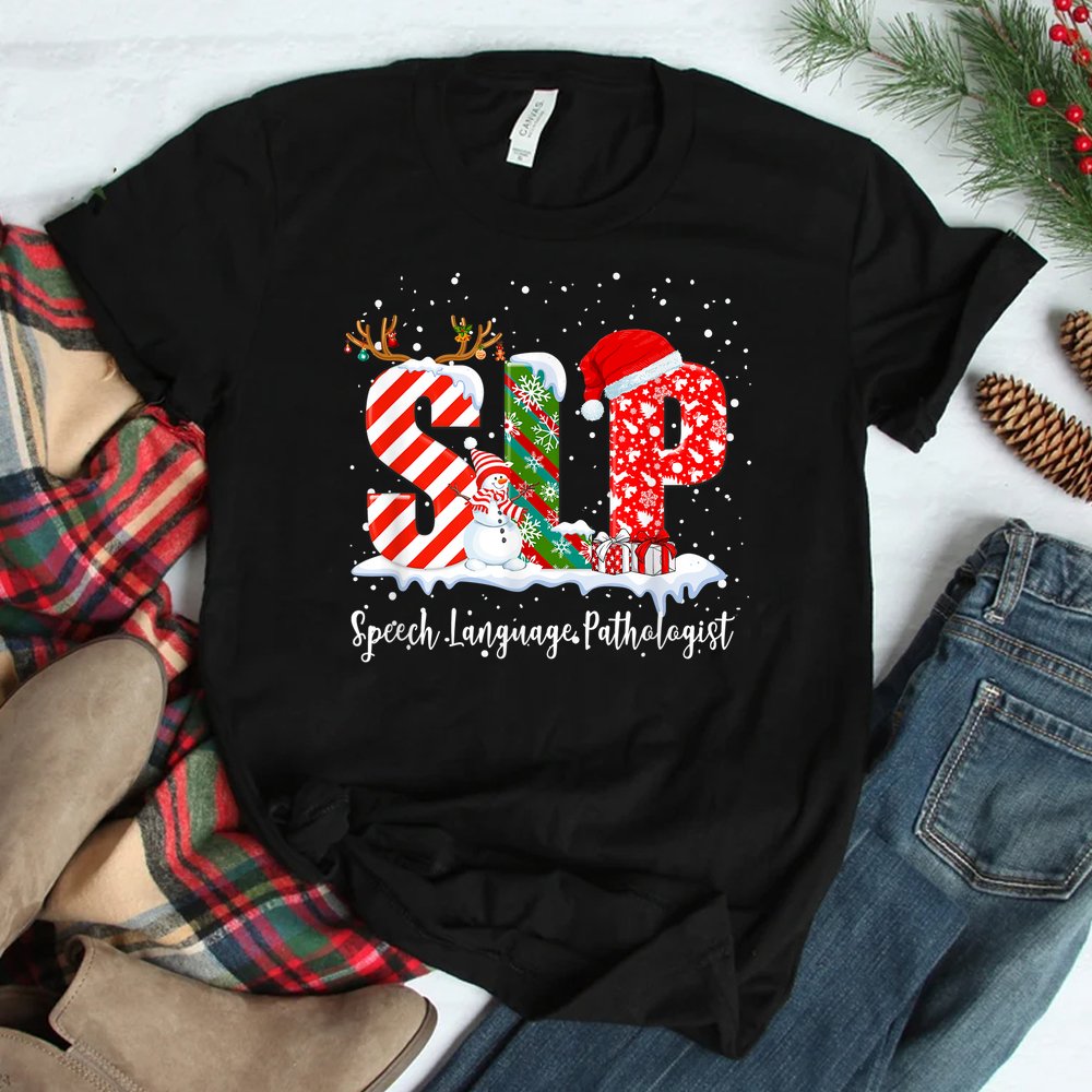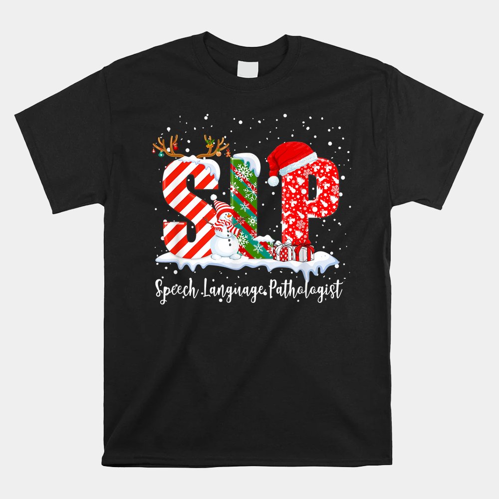 SLP Speech Language Pathologist Santa Christmas Pajama Shirt, hoodie, sweatshirt, long sleeve and ladies T-shirt