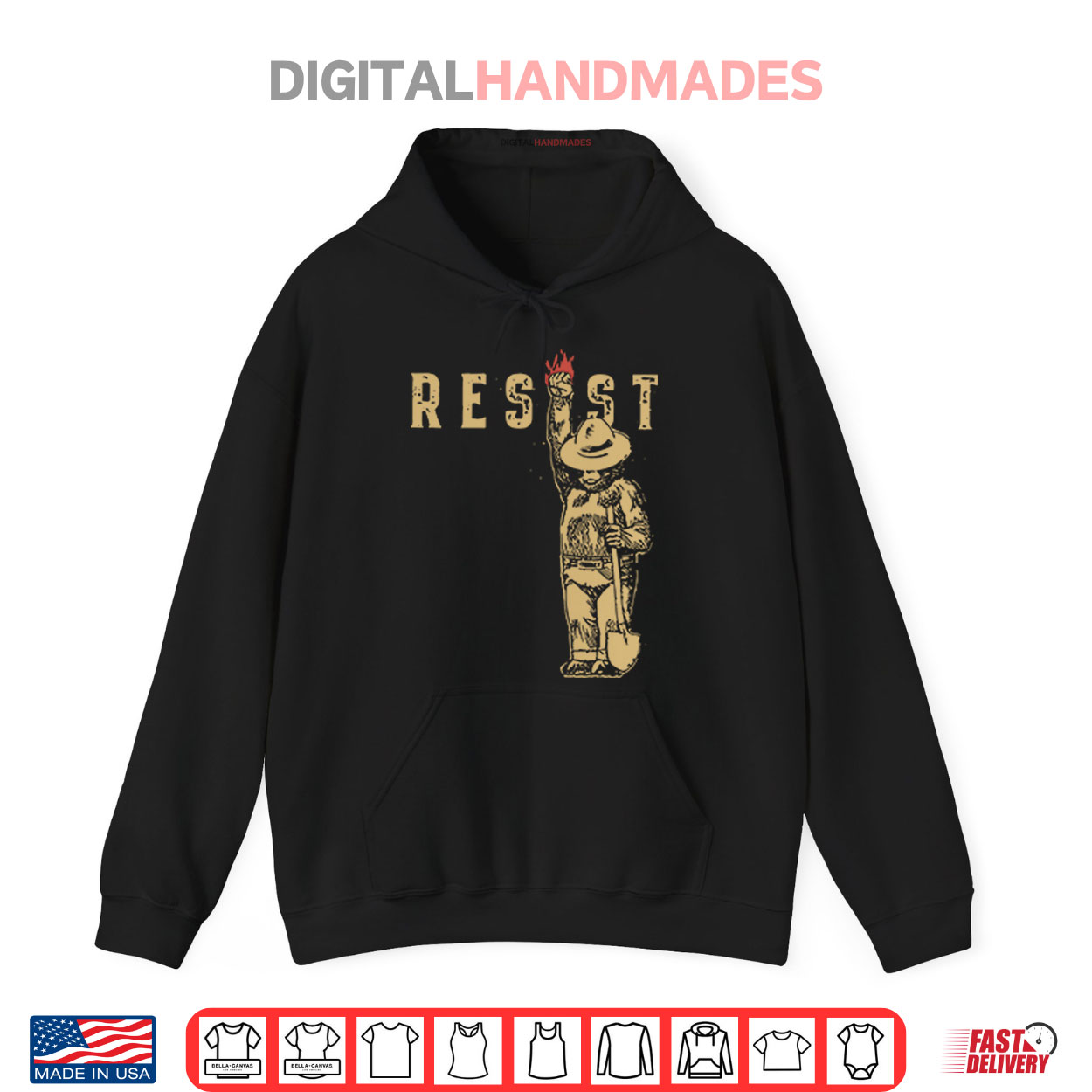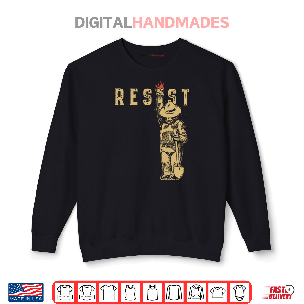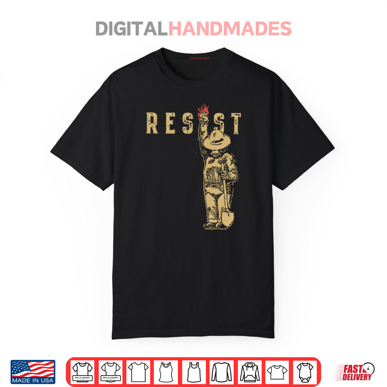The “Smokey Bear Resist Shirt” is a striking blend of environmental advocacy and political expression, rooted in the legacy of Smokey Bear, the U.S. Forest Service’s iconic wildfire prevention mascot since 1944. This shirt reimagines Smokey—typically seen urging, “Only YOU can prevent wildfires”—with a bold twist, incorporating the word “Resist” to signal defiance, often tied to anti-establishment or anti-Trump sentiments that surged post-2016. Popularized by outlets like Pittsburgh’s Cotton Bureau in 2017, it became a viral symbol of protest, with designs featuring Smokey in his ranger hat emblazoned with “Resist,” channeling frustration over policies threatening national parks or climate action.