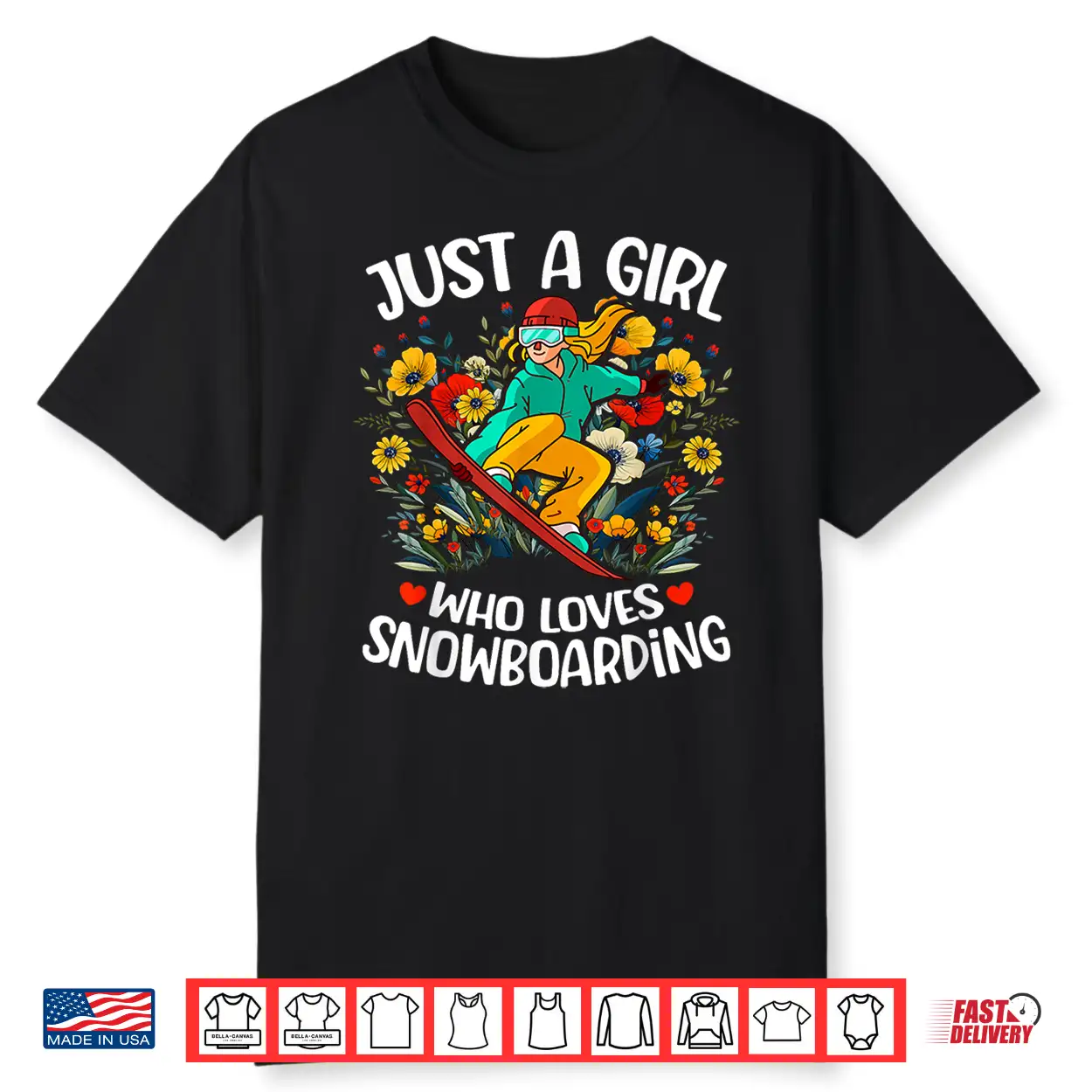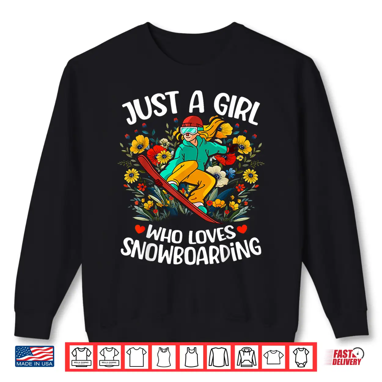 Snowboarding Lover Flower Just A Girl Who Loves Snowboarding Shirt
