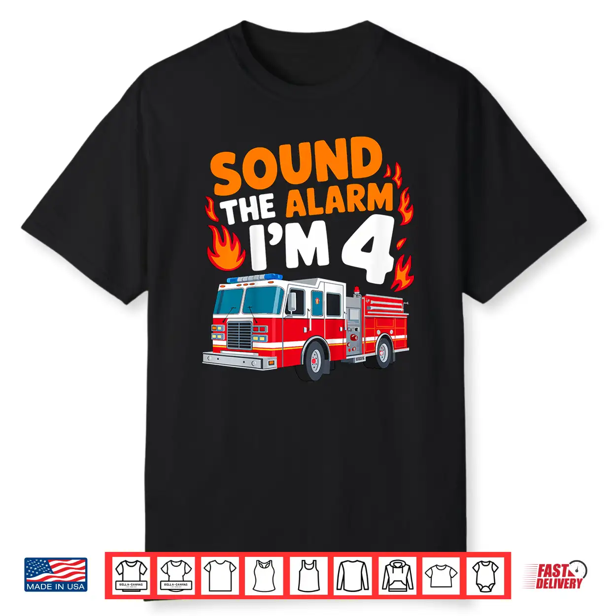 Sound The Alarm Im 4 Years Old 4Th Birthday Firefighter Shirt